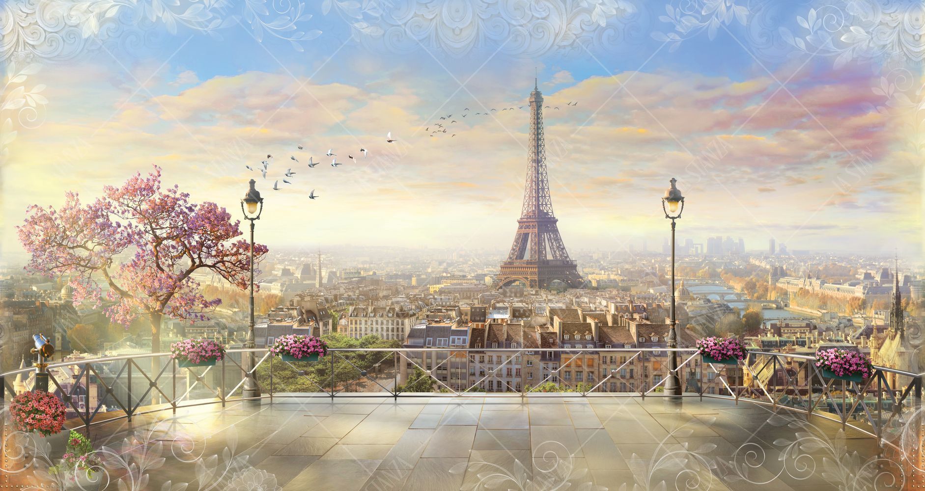 Фреска Париж, вид на Эйфелеву башню с балкона