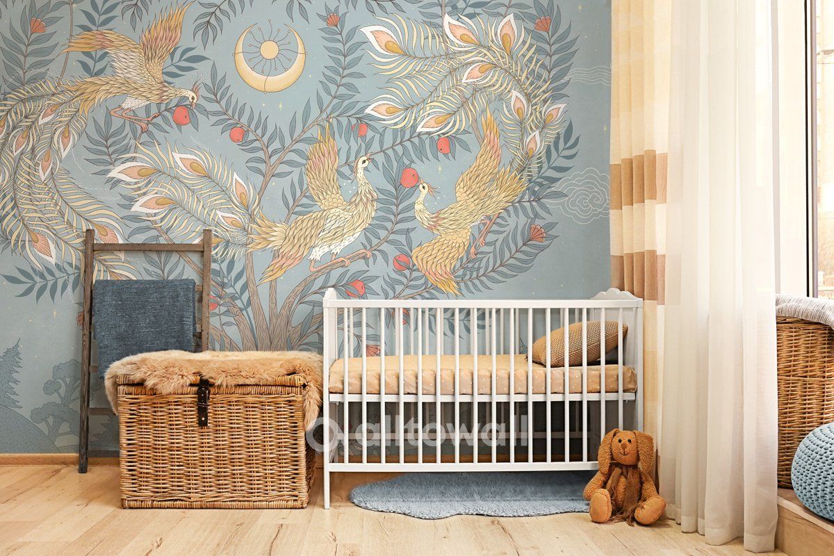 Сюжет «Перо Жар-птицы-1» посвящён загадочным сказочным существам, которые известны всем малышам. Необычная птица с огненным оперением создаёт уютную обстановку, располагающую к полноценному отдыху и играм. Цветовая гамма комбинированная – голубой фон, изображающий небо с искрами звёзд, и резвящиеся на яблоне жар-птицы, которых озаряет сияние молодой Луны.