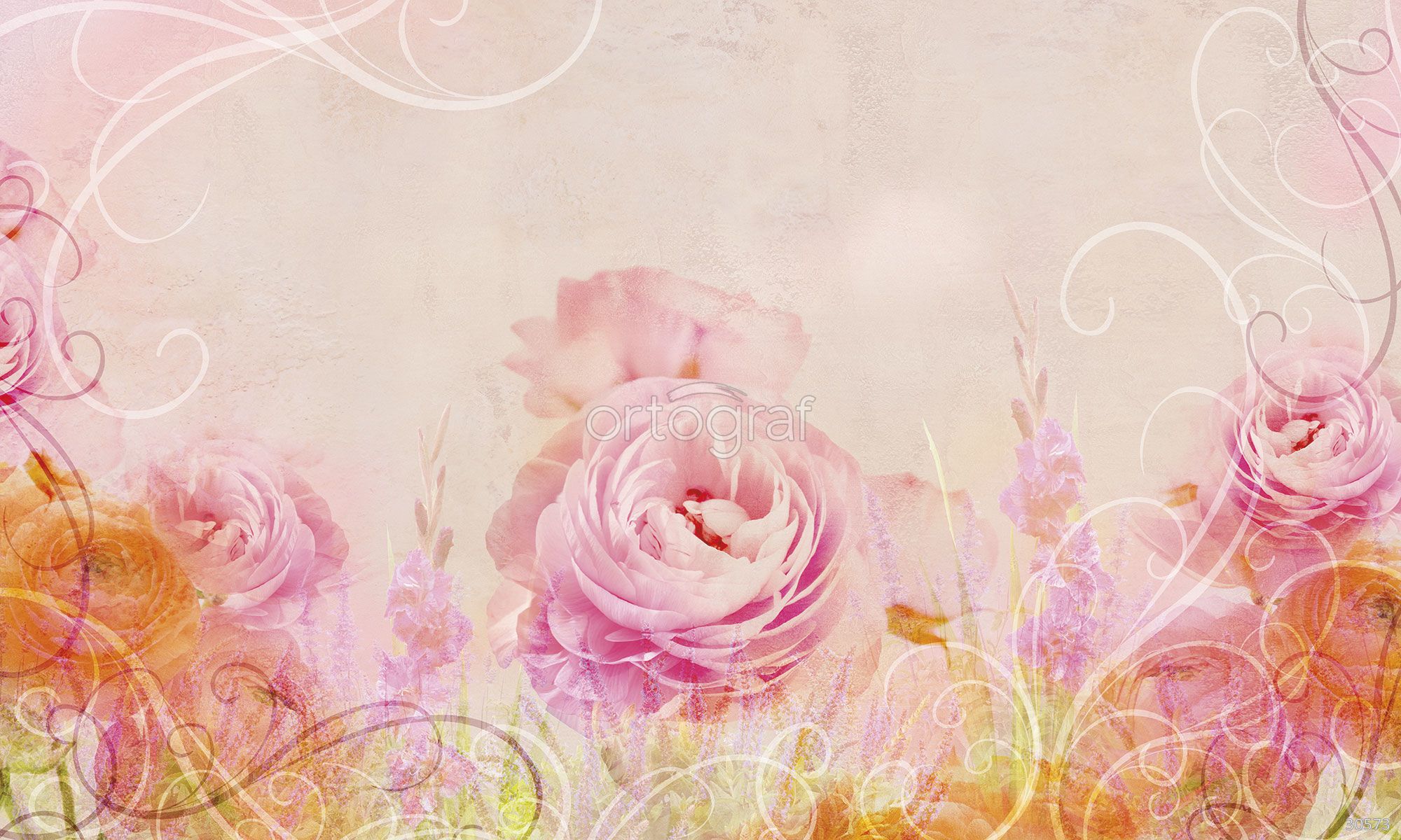 Нежная и воздушная композиция с цветами, ажурными завитками и легким акварельным эффектом, создающее ощущение весенней свежести и романтики. Такой рисунок добавляет интерьеру тепло, мягкость и лёгкий художественный акцент, делает пространство уютным и ярким. Отлично подойдёт для оформления помещений с атмосферой уюта и гармонии.