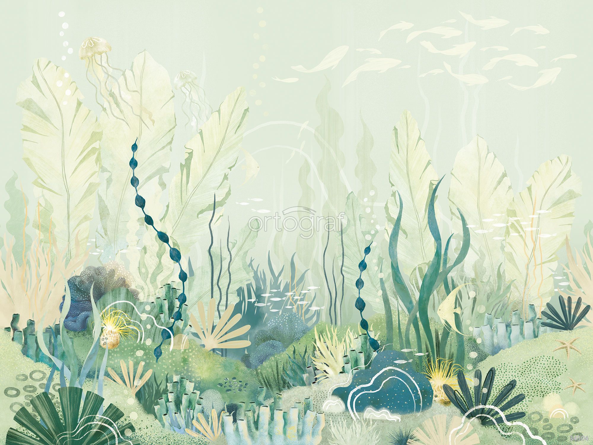 Подводный мир с водорослями, медузами и морскими существами создаёт ощущение глубины и лёгкости, добавляя интерьеру атмосферу свежести и спокойствия. Такой сюжет гармонично впишется в помещения для отдыха или уединения, помогая расслабиться и представить себя на морском дне. Идеально подходит для создания ненавязчивого, но эффектного акцента в современном интерьере.