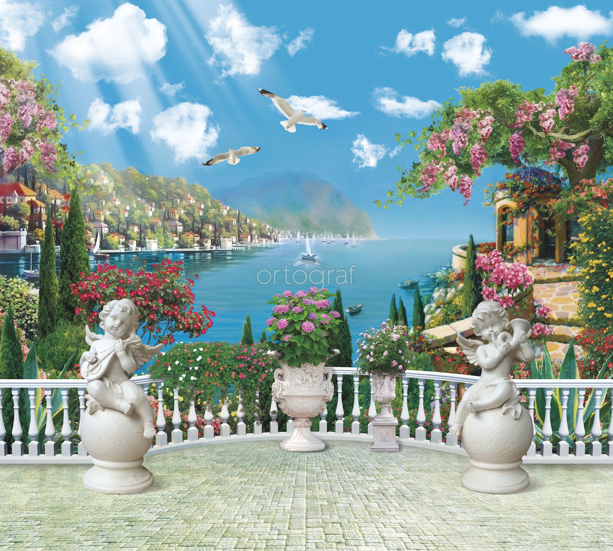 Живописный морской пейзаж с видом на залив, яхты, скульптуры ангелов и цветущие деревья создают атмосферу итальянского побережья и ощущение простора. Такой сюжет прекрасно подойдет для оформления светлых помещений, придавая им легкость и ощущение уюта. Отлично украсит интерьер в стиле классики или средиземноморского направления.