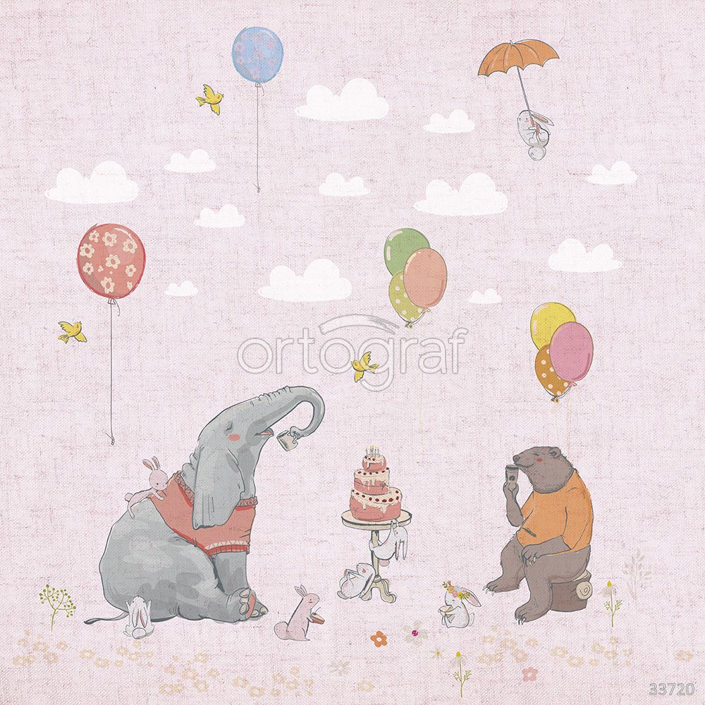 Добрая сценка с милыми животными, которые празднуют с тортом, воздушными шариками и облаками, создает атмосферу уюта, радости и праздника. Такой сюжет отлично впишется в интерьер детской комнаты, добавив ей волшебства и вдохновения для игр и творчества. Изображение идеально подходит для малышей, делая пространство теплым и приветливым.