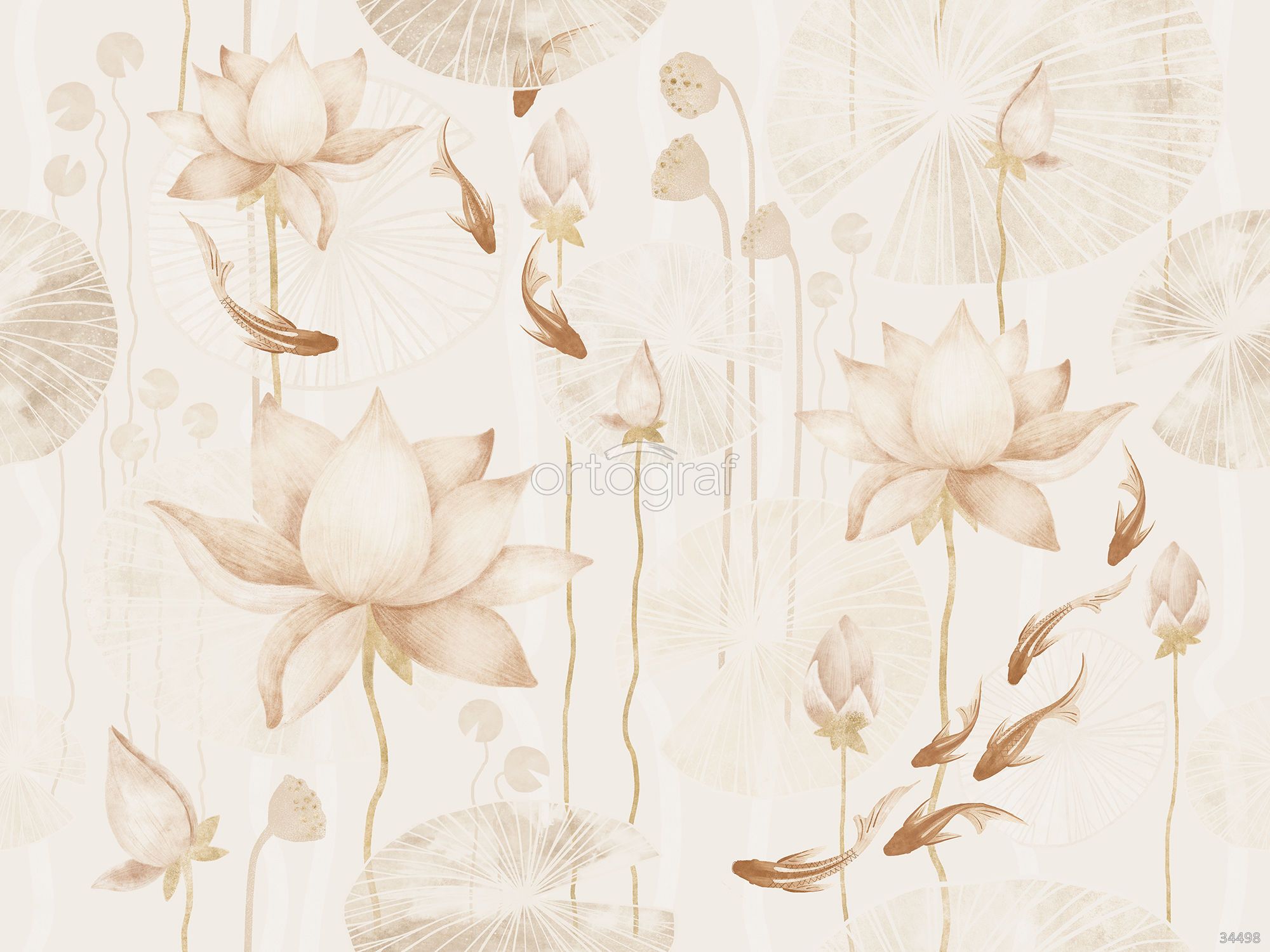 На рисунке изображены водные лилии, карпы и плавная ритмика водной глади, создающие атмосферу спокойствия, гармонии и естественной красоты. Такой сюжет идеально подходит для оформления пространства, где ценится расслабляющая и природная эстетика, способствующая отдыху и умиротворению. Изображение помогает добавить интерьеру лёгкости и визуальной глубины.