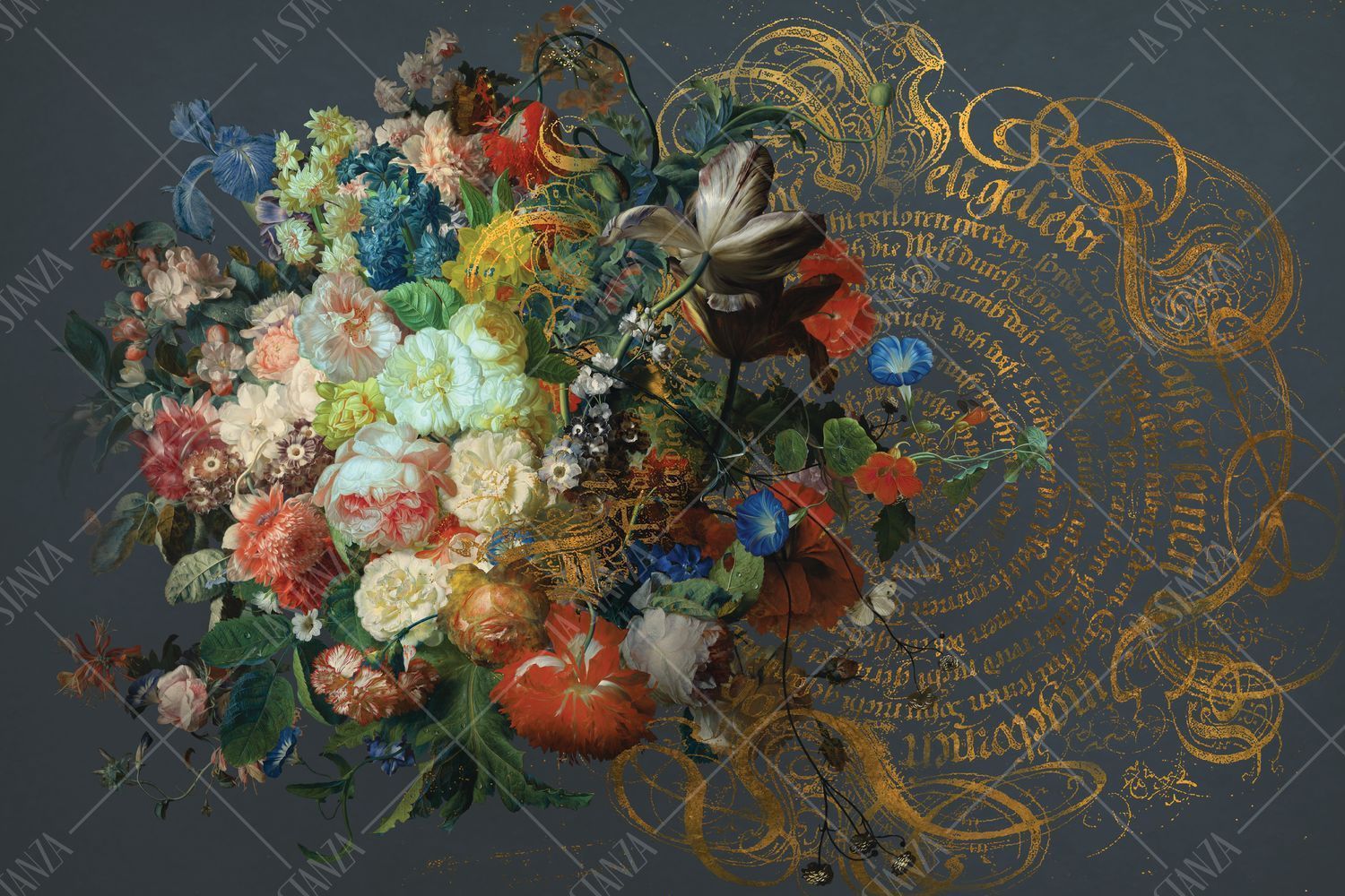 Фреска Пышный букет цветов на сером фоне