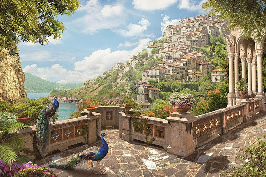 Фреска Резной парапет с павлинами