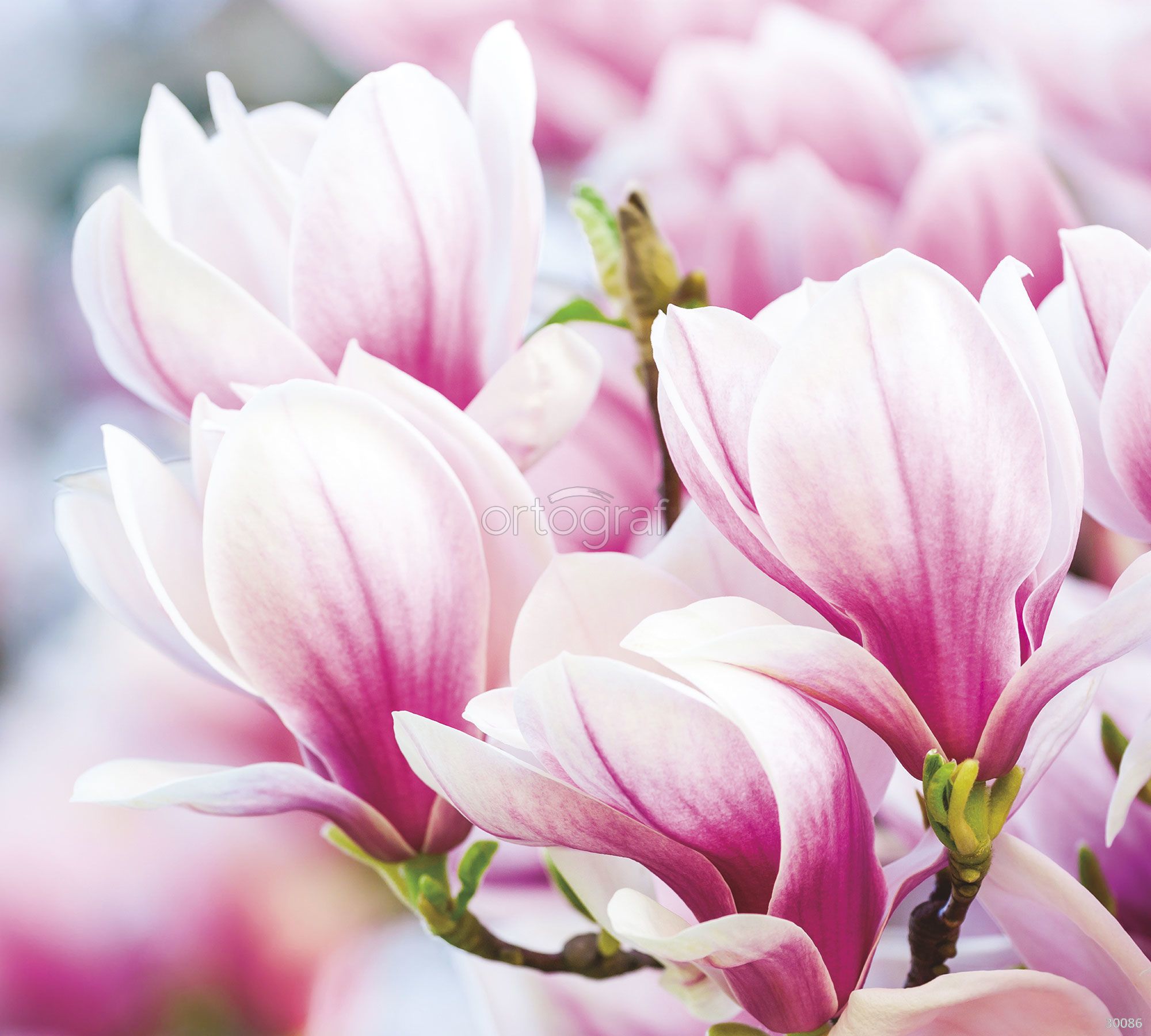Крупный план цветущих бутонов магнолии с переливами розовых и белых оттенков. Композиция наполнена ощущением нежности, свежести весны и элегантной природной красоты.