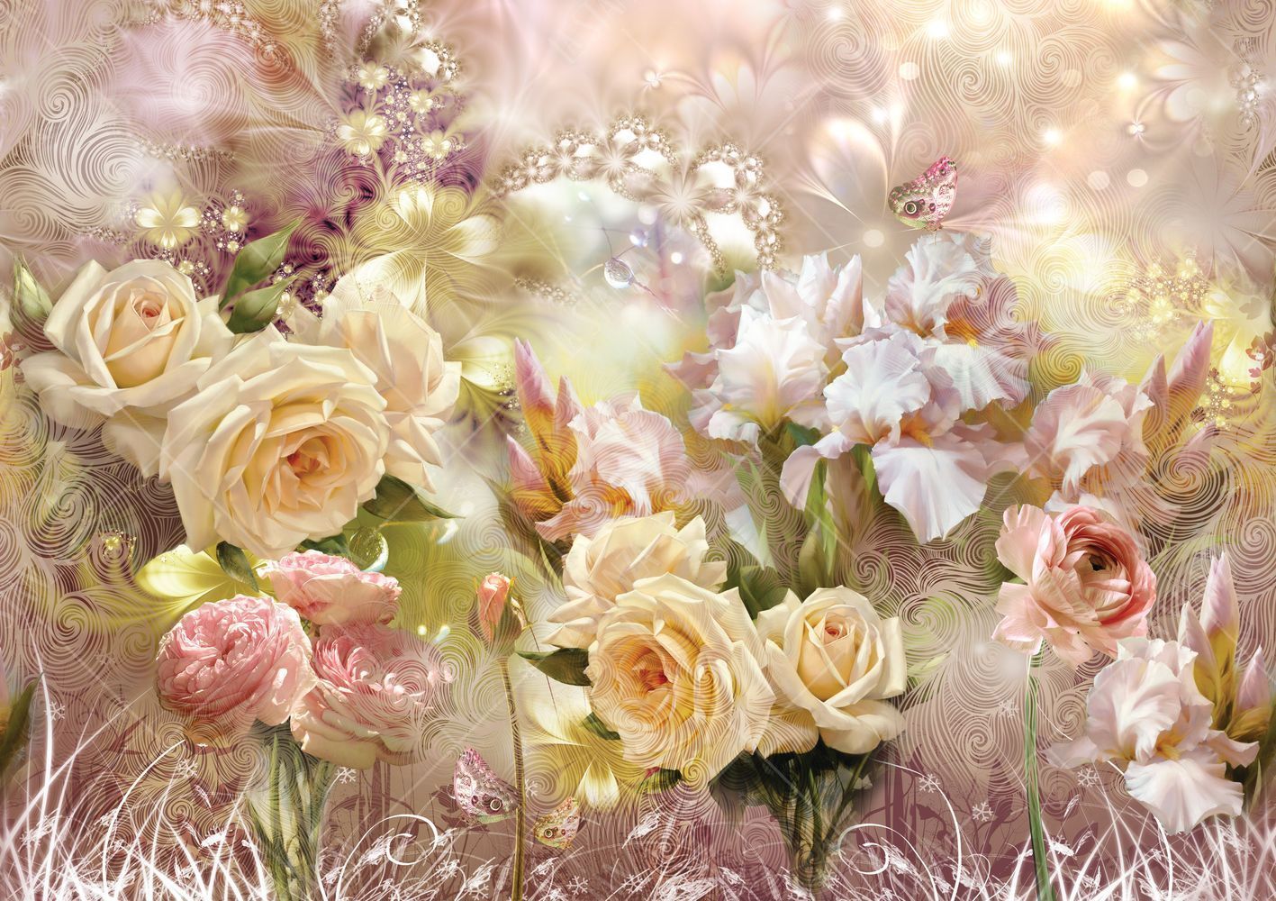 Фреска Розы и ирисы
