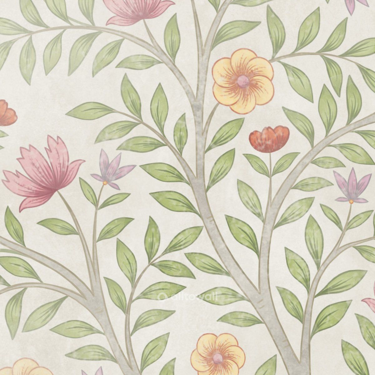 Помните ли вы свой сборник русских народных сказок из детства? Красочный, в твёрдом переплете с позолоченными буквами на обложке. Мы вдохновились этими воспоминаниями и создали принт «Русский сад». Эти обои выполнены в стиле иллюстраций к любимым сказкам. Вместо молодильных яблочек на деревьях — цветы и ягоды, а рядом — фантазийные растения, которые будет интересно рассматривать. Сюжет «Русский сад» может украсить вашу детскую, игровую или спальню, создав уютную и сказочную атмосферу.