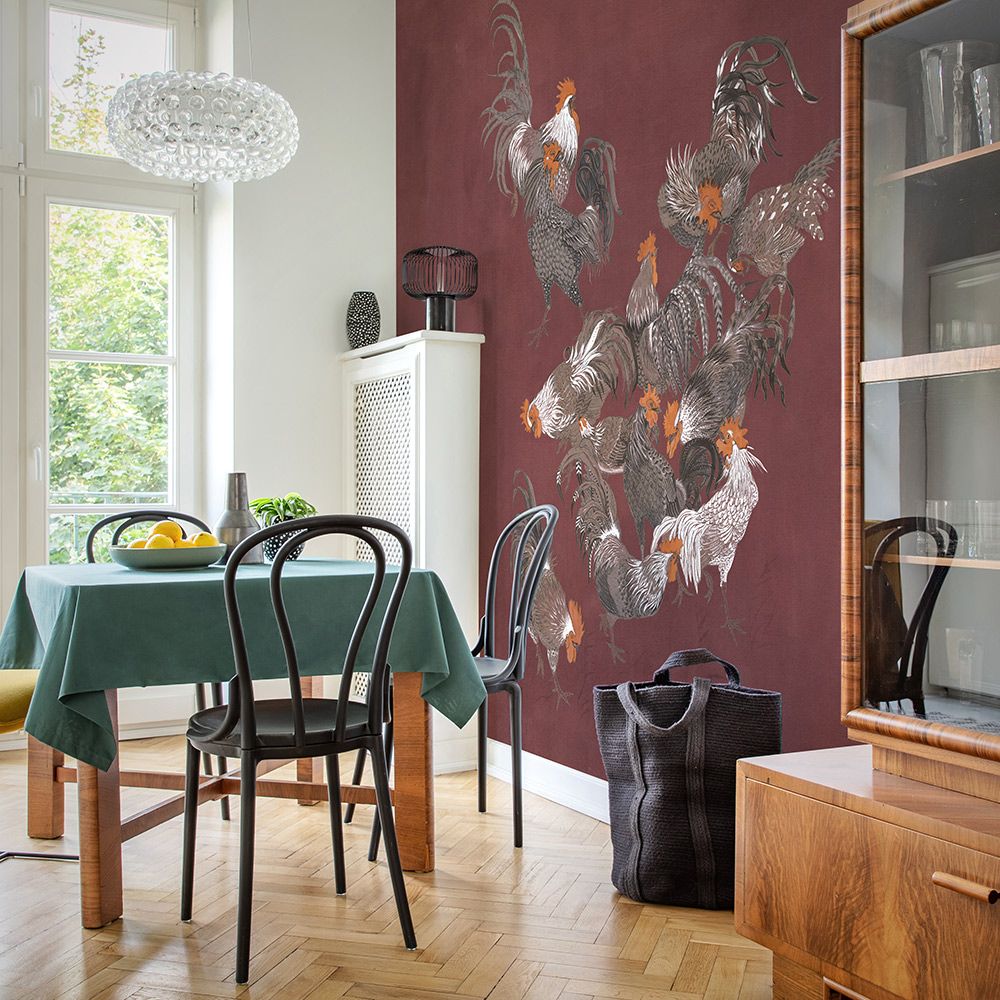 SERENATO – обои с характером, которые сразу выделяются своей эмоциональностью и харизмой. В центре композиции — яркая, шумная стая петушков, словно собравшихся на утренний концерт. Каждый из них — с задиристым взглядом, разлетающимися перьями, и будто бы в любой момент готов крикнуть своё весёлое «кукареку». Эти обои не про тишину — они про жизнь, ритм, утро и энергию. Графика выполнена в выразительной авторской манере, с чёткими линиями, контрастами и продуманной цветовой палитрой. Такой сюжет идеально подойдёт для акцентной стены — в кухне, столовой, креативной студии или даже в зоне приёма гостей. SERENATO оживит пространство, сделает его неординарным и запоминающимся, добавит каплю юмора и настроение праздника. Обои доступны в нескольких цветовых вариантах — от сдержанных до дерзко-насыщенных, что позволяет адаптировать модель под разные стили интерьера: от современной эклектики до смелого кантри. Это отличный выбор для тех, кто не боится выделиться и ищет что-то по-настоящему особенное.