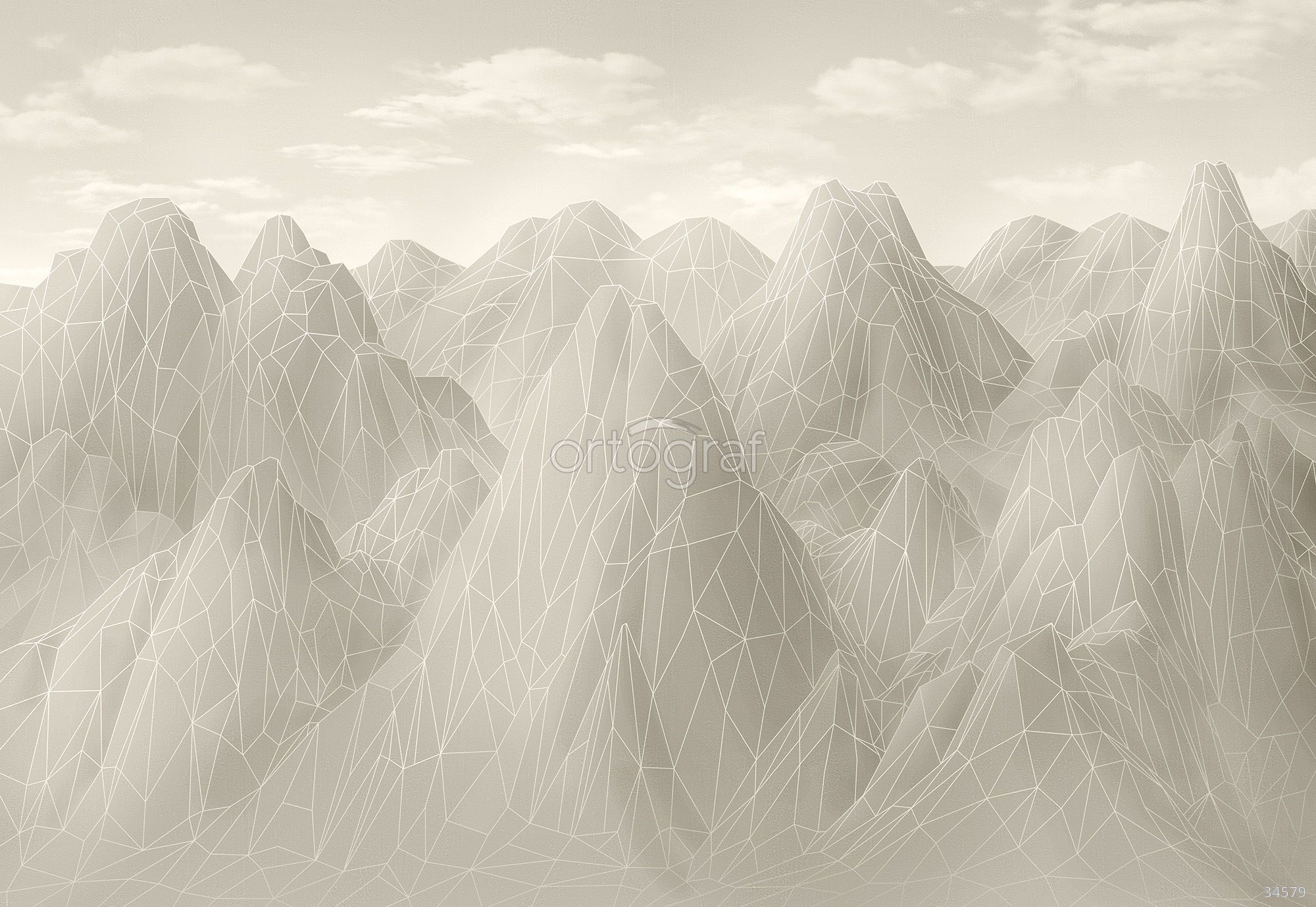 Современное стилизованное изображение гор с чёткими графичными линиями создаёт эффект объёмного пространства и упорядоченности. Такой рисунок добавляет интерьеру нотки минимализма, свежести и динамики, визуально расширяя помещение. Сюжет универсален и отлично подойдёт как для мест отдыха, так и для рабочих зон, подчёркивая актуальность современного подхода к дизайну.