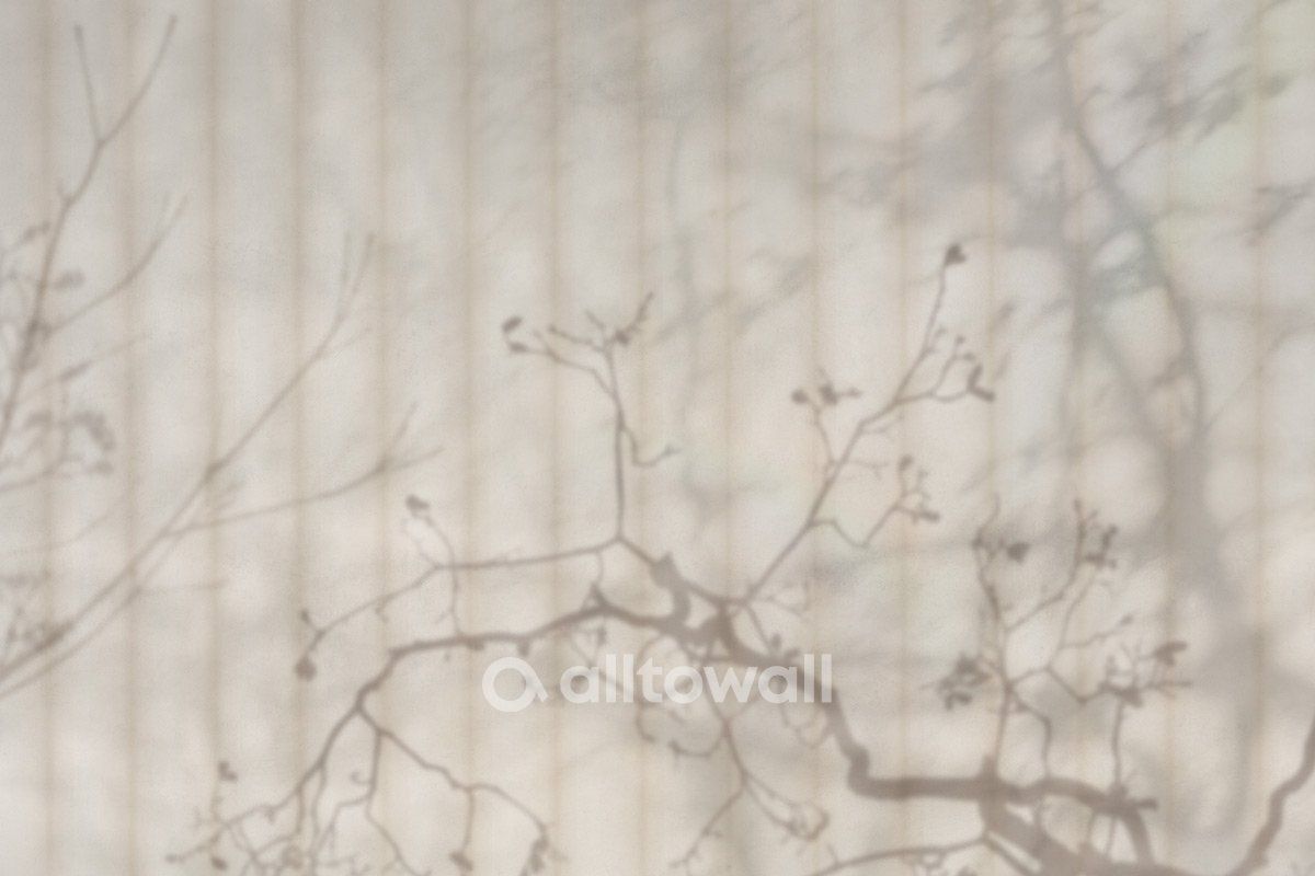 Обои с рисунком в виде изогнутых ветвей деревьев на тёплом бежевом фоне с лаконичными полосками. Спокойный и умиротворяющий сюжет «SHADOWS Tree» подойдёт для спальни, гостиной, кабинета или любого общественного пространства.