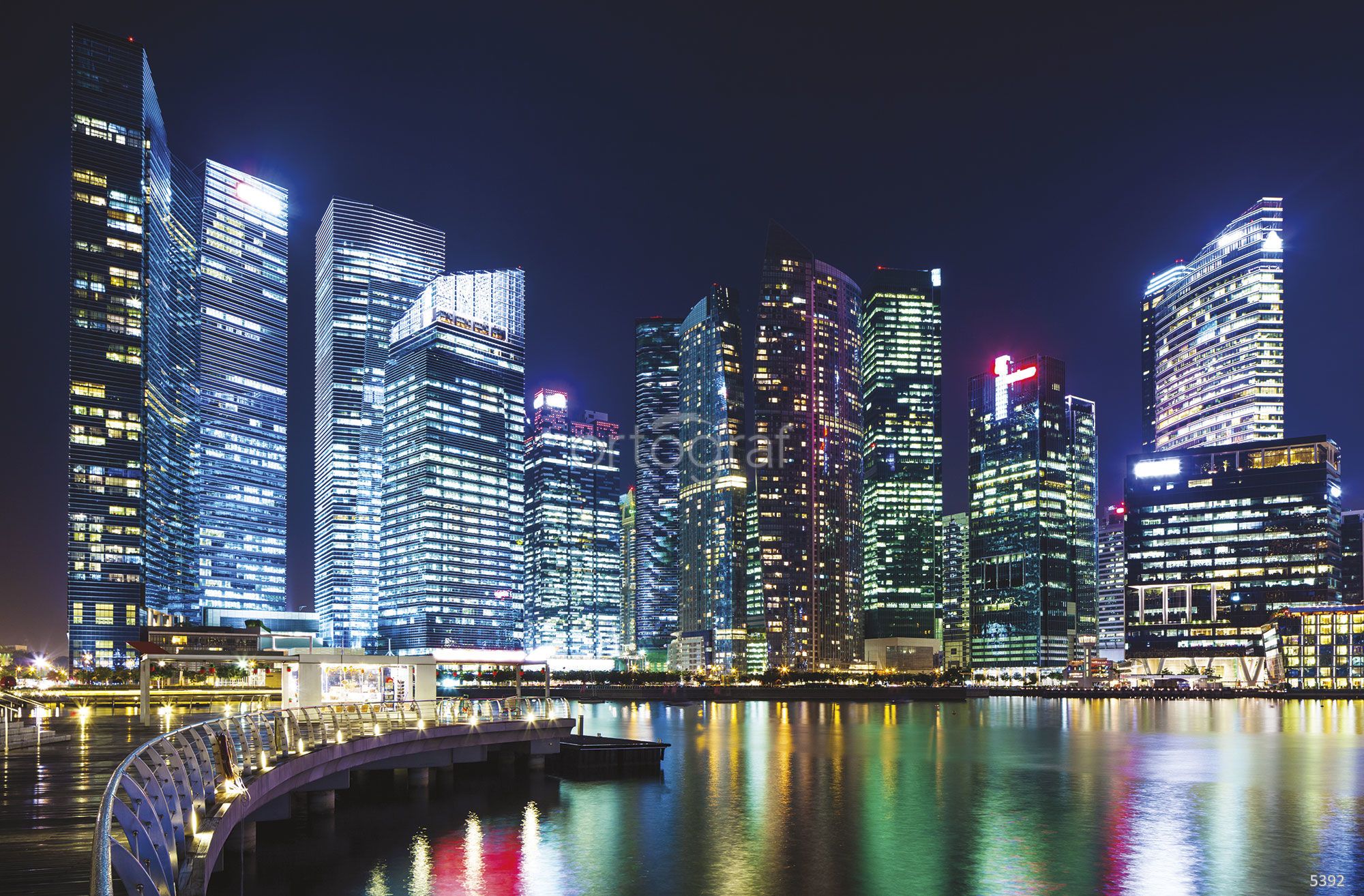 Современный городской пейзаж с высотными зданиями на набережной, отражающими свет в воде, создаёт динамичную и технологичную атмосферу. Такой сюжет хорошо подчеркнёт стиль и энергетику пространства, особенно в офисе, гостиной или прихожей и коридоре. Изображение отлично подходит для минималистичных и современных интерьеров.