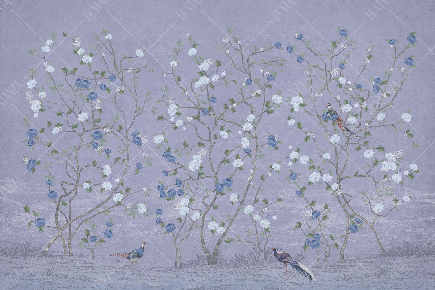 Фреска Сиреневое панно с цветущими деревьями