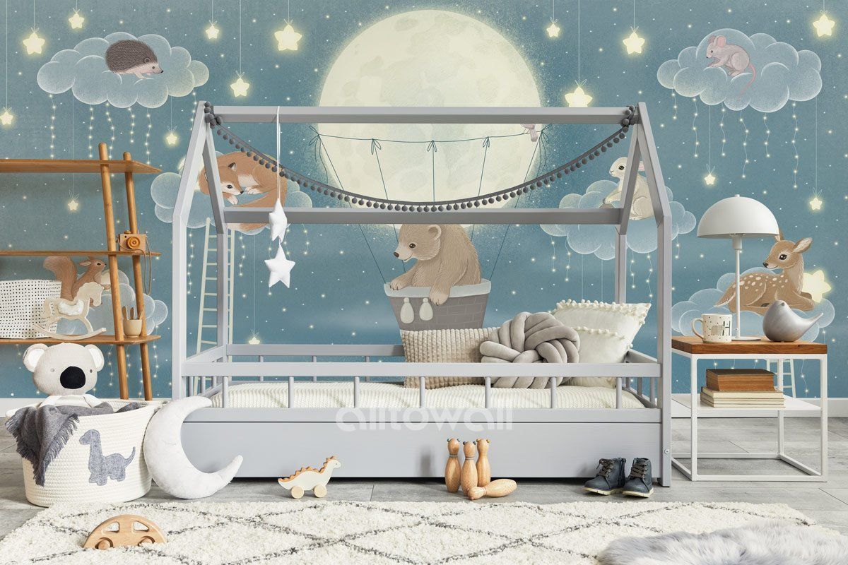 Мамины сказки на ночь — приятное, ласковое и доброе воспоминание из детства, пожалуй, каждого из нас. По мотивам сказок мы создали эти детские обои: здесь мишка, лисичка, заяц, белочка, оленёнок, ёжик и мышка засыпают при свете Луны, а лесная опушка освещена огоньками сотен светлячков.