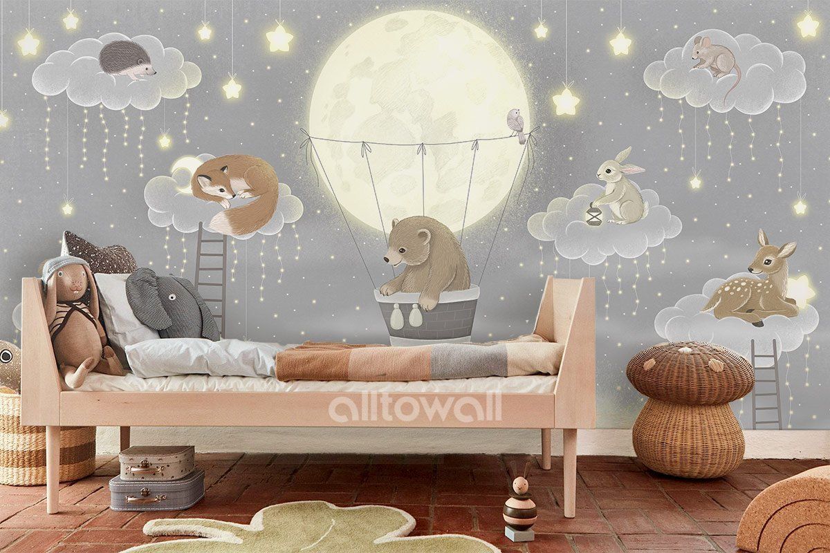 Уютный сюжет, который подойдёт для маленьких непосед: и для мальчиков, и для девочек, и в общую комнату малышей. Здесь любимые герои детских сказок готовятся ко сну, укладываются поудобнее на облачках-кроватках, а кто-то даже уже видит сладкие сны.