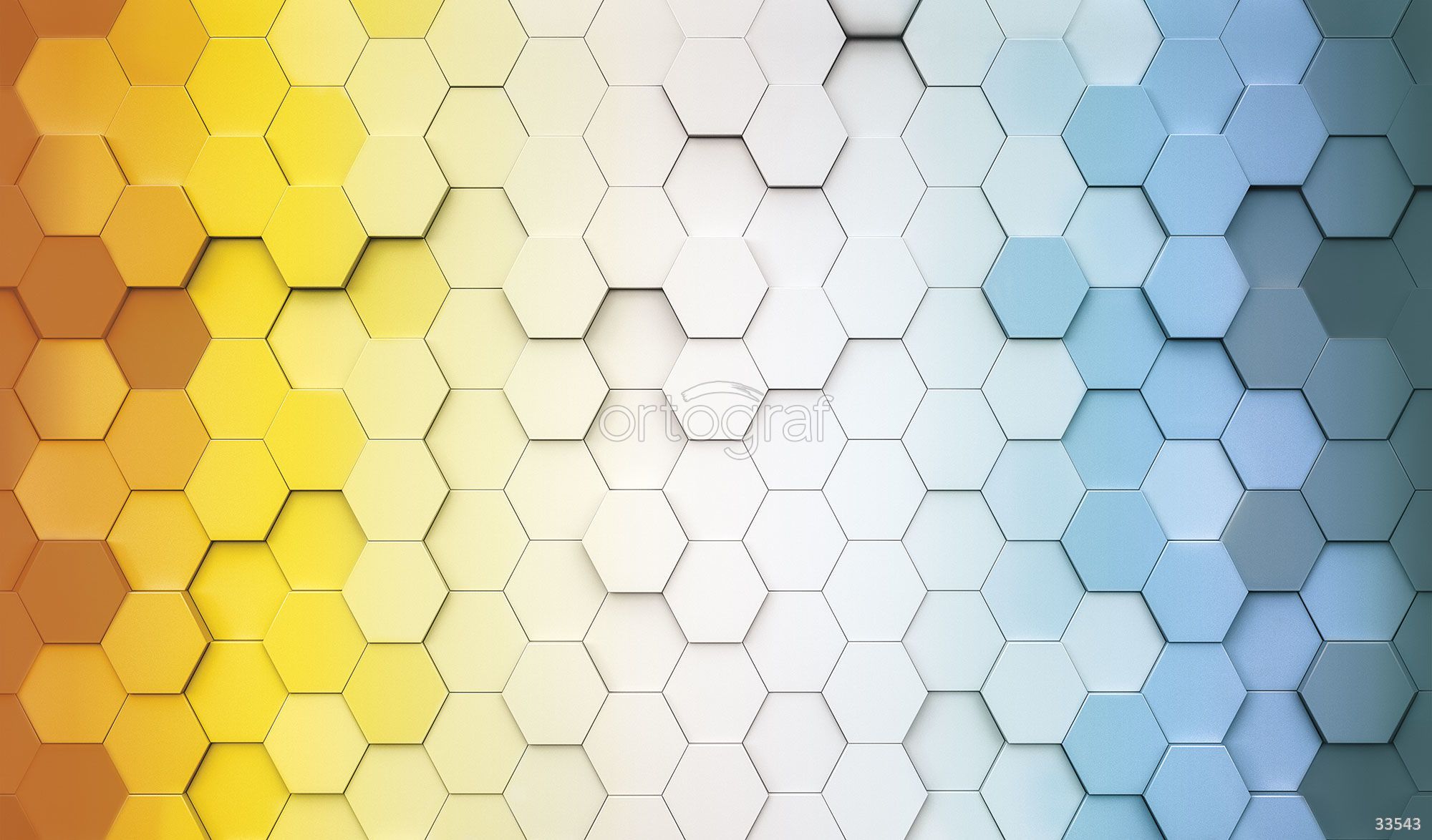 Абстрактный узор из выпуклых шестиугольников с плавным переходом между светлыми и насыщенными оттенками, создаёт динамику и современный стиль. Минималистичный дизайн и геометрические формы делают композицию универсальной для любых современных интерьеров. Такой рисунок особенно хорошо подойдет для оформления офиса, кухни или прихожей и коридора, создавая свежую и энергичную атмосферу.