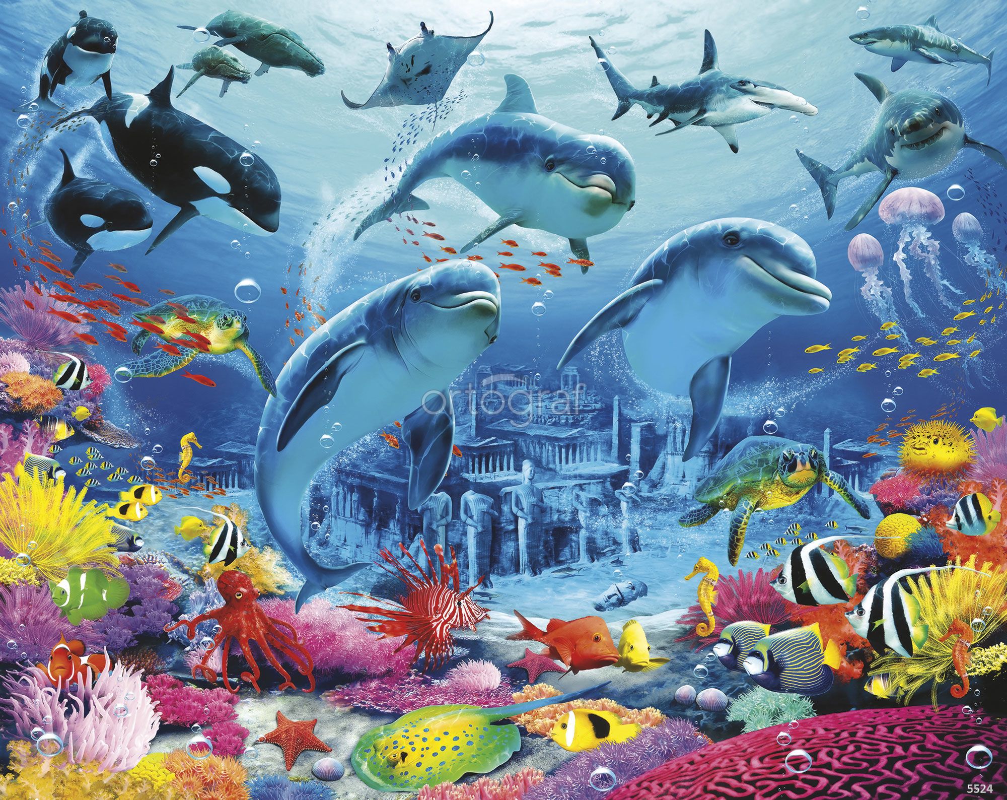 Яркая и насыщенная подводная сцена с дельфинами, касатками, акулами, черепахами и разнообразными тропическими рыбами среди кораллов создаёт ощущение настоящего морского приключения. Такой сюжет замечательно подходит для оформления детской комнаты или ванной, добавляя интерьеру игривости, радости и познавательности. Морской сюжет прекрасно стимулирует воображение и ассоциируется с летом и путешествиями.