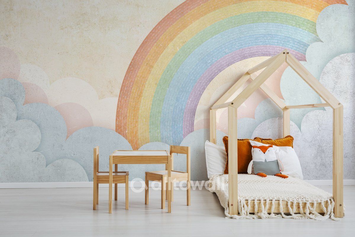 Текстурная радуга – обои для детской комнаты малыша, оформленные с необычным рельефом и изображением неба после дождя. Универсальный сюжет, при помощи которой спальне придаётся гармоничный вид и уют. Мягкие пастельные оттенки и особая техника печати вместе с текстурной основой создадут необычное впечатление, зрительно обеспечат углубление пространства.