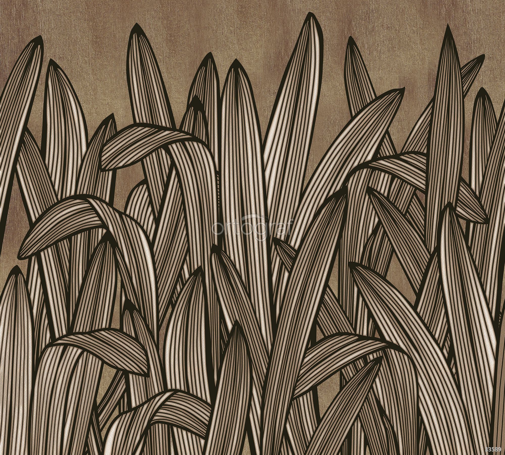 Графичное изображение листьев с чёткой линией и выразительной фактурой создаёт стильную и современную атмосферу. Такой рисунок добавит динамику и свежесть в интерьер, подойдёт для акцентной стены или всей поверхности. Прекрасно впишется в пространства, где требуется изюминка и оригинальность, не перегружая общий стиль.