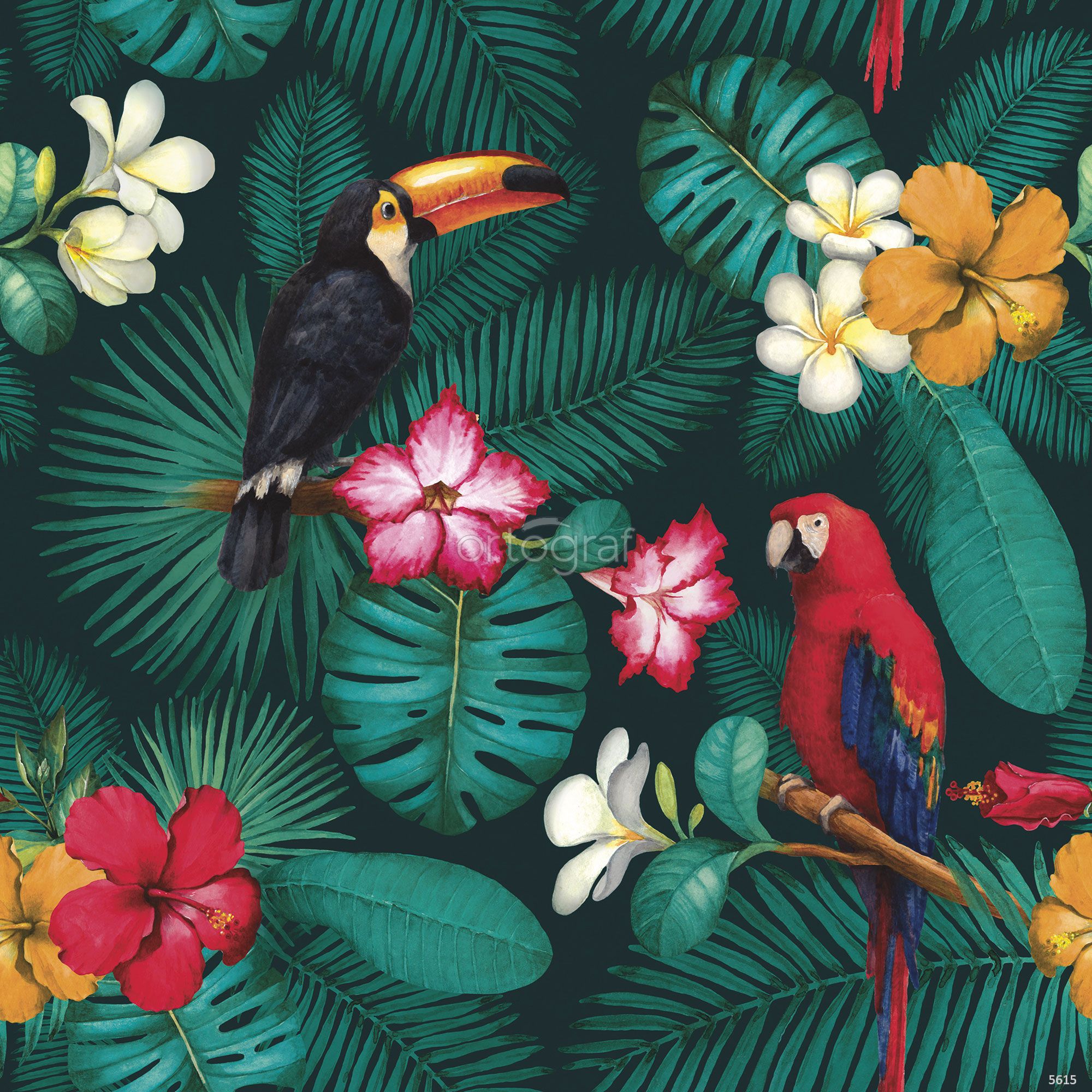 Экзотический рисунок с тропическими птицами, листьями и цветами создаёт атмосферу яркости, энергии и свежести джунглей. Такой сюжет оживляет интерьер, наполняет его динамикой и экзотическим шармом, отлично подходит для современных и креативных пространств, где хочется добавить природные мотивы. Особенно гармонично смотрится в помещениях для отдыха, общения и игр.