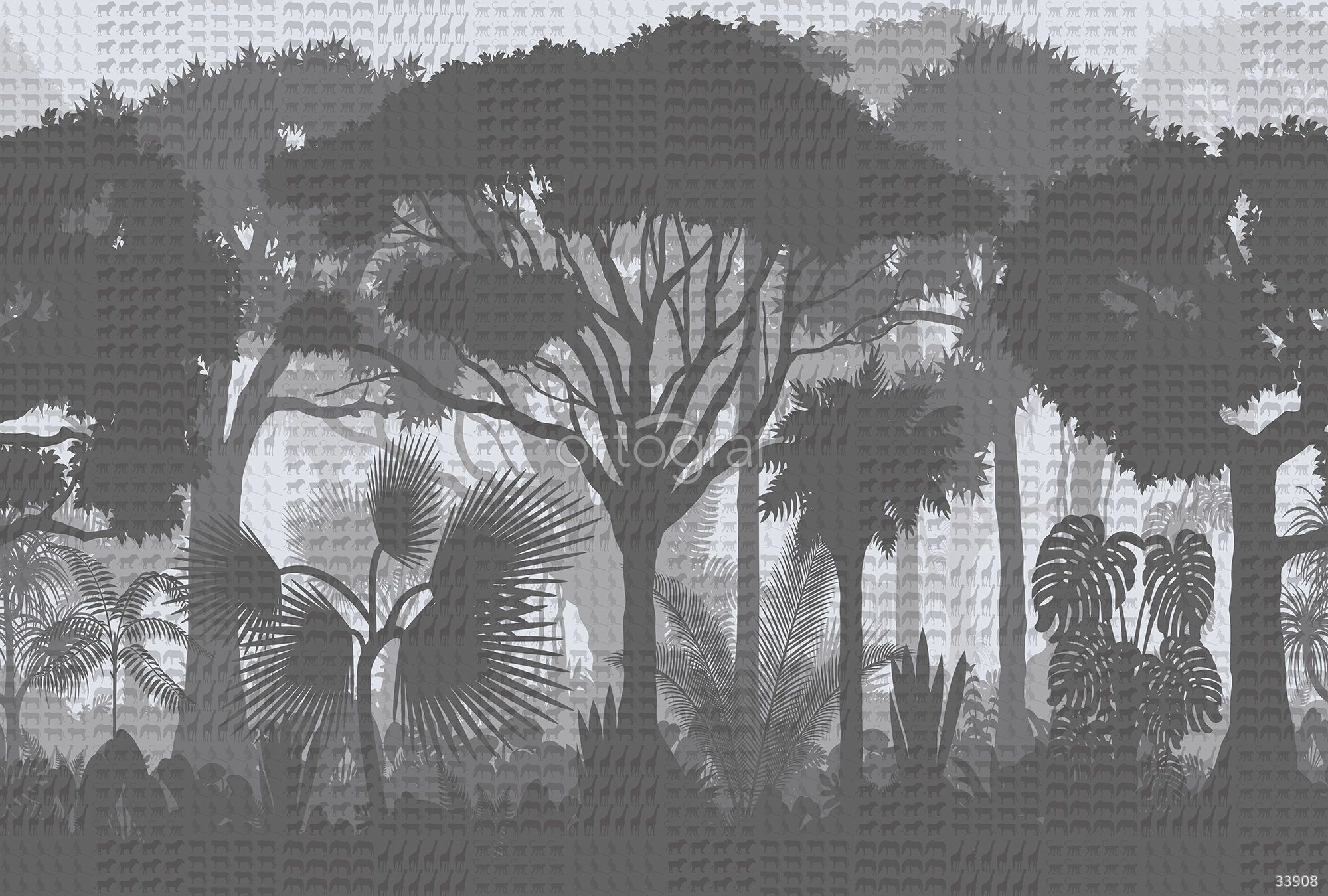 Графичный сюжет с пышной растительностью, экзотическими деревьями и крупными листьями создает атмосферу тропического леса и уединённости. Такой дизайн добавляет пространству глубину, стиль и современную динамику, оставаясь универсальным для разных интерьерных решений. Лучше всего подойдет для оформления гостиной, спальни или кабинета, создавая спокойную и вдохновляющую обстановку.