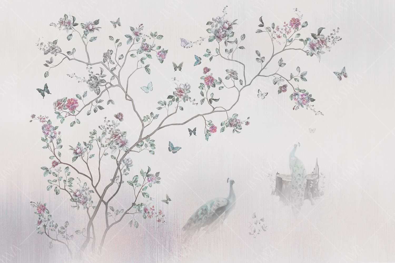 Фреска Цветущее дерево и павлины, китайская роспись