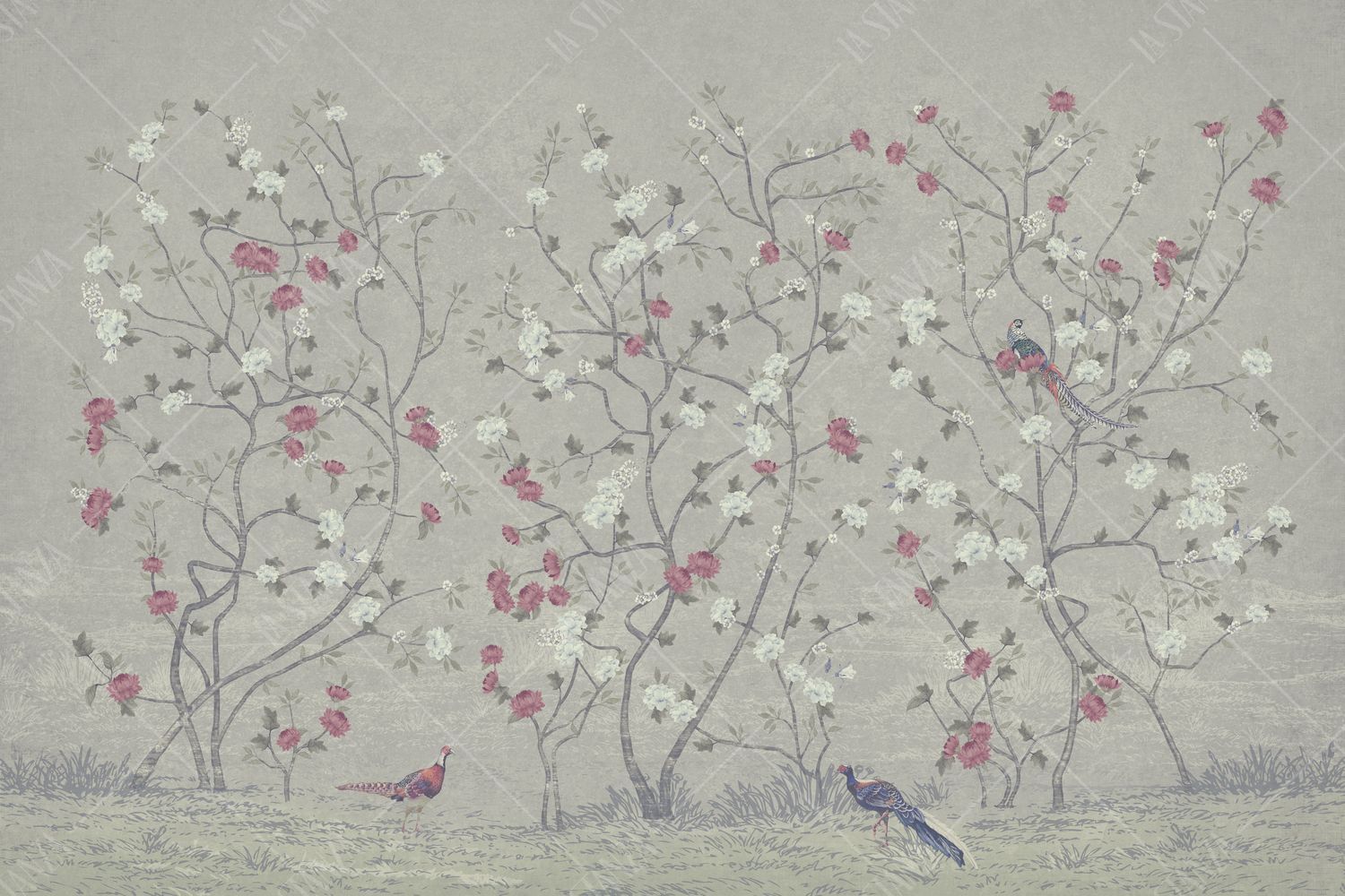 Фреска Цветущие деревья, птицы, стиль шинуазри