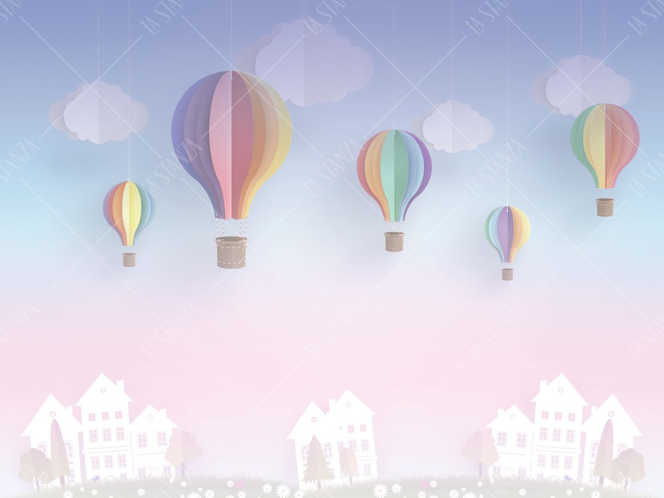 Фреска Туман, облака, воздушные шары и домики