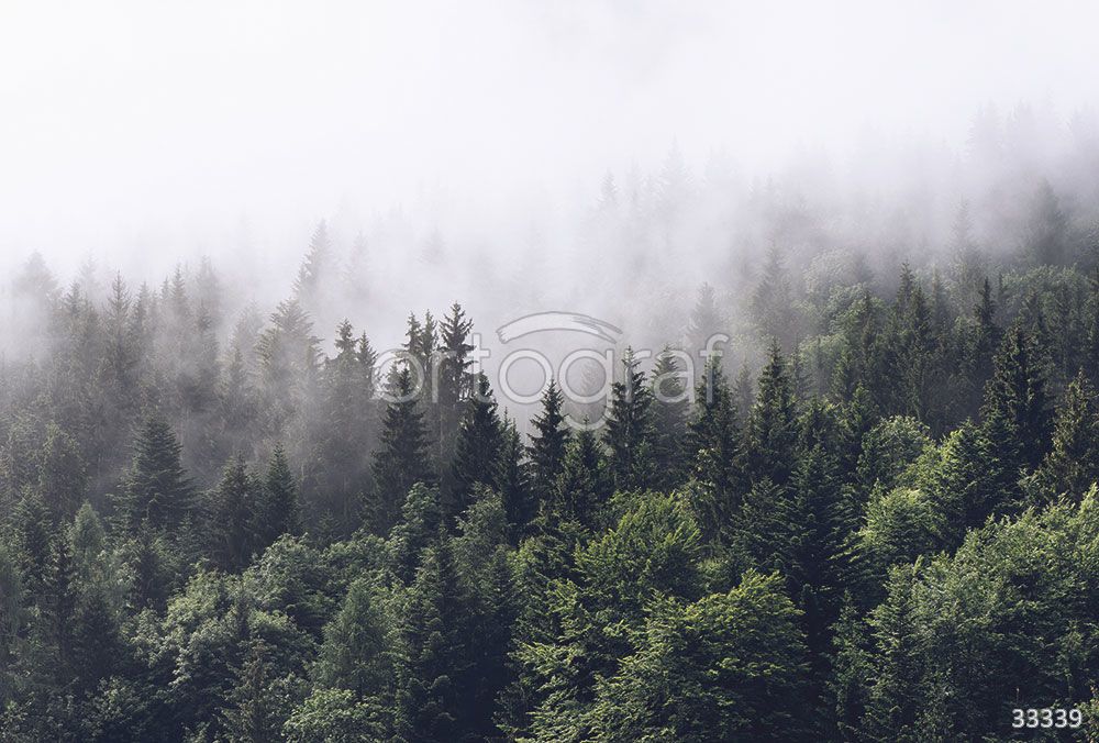 Лес, скрытый в лёгком тумане, создаёт загадочную и умиротворяющую атмосферу, придавая пространству нотки спокойствия и свежести. Такое изображение помогает визуально углубить интерьер и добавить ощущение природы и уединения. Идеально подходит для минималистичных, современных и классических дизайнов.