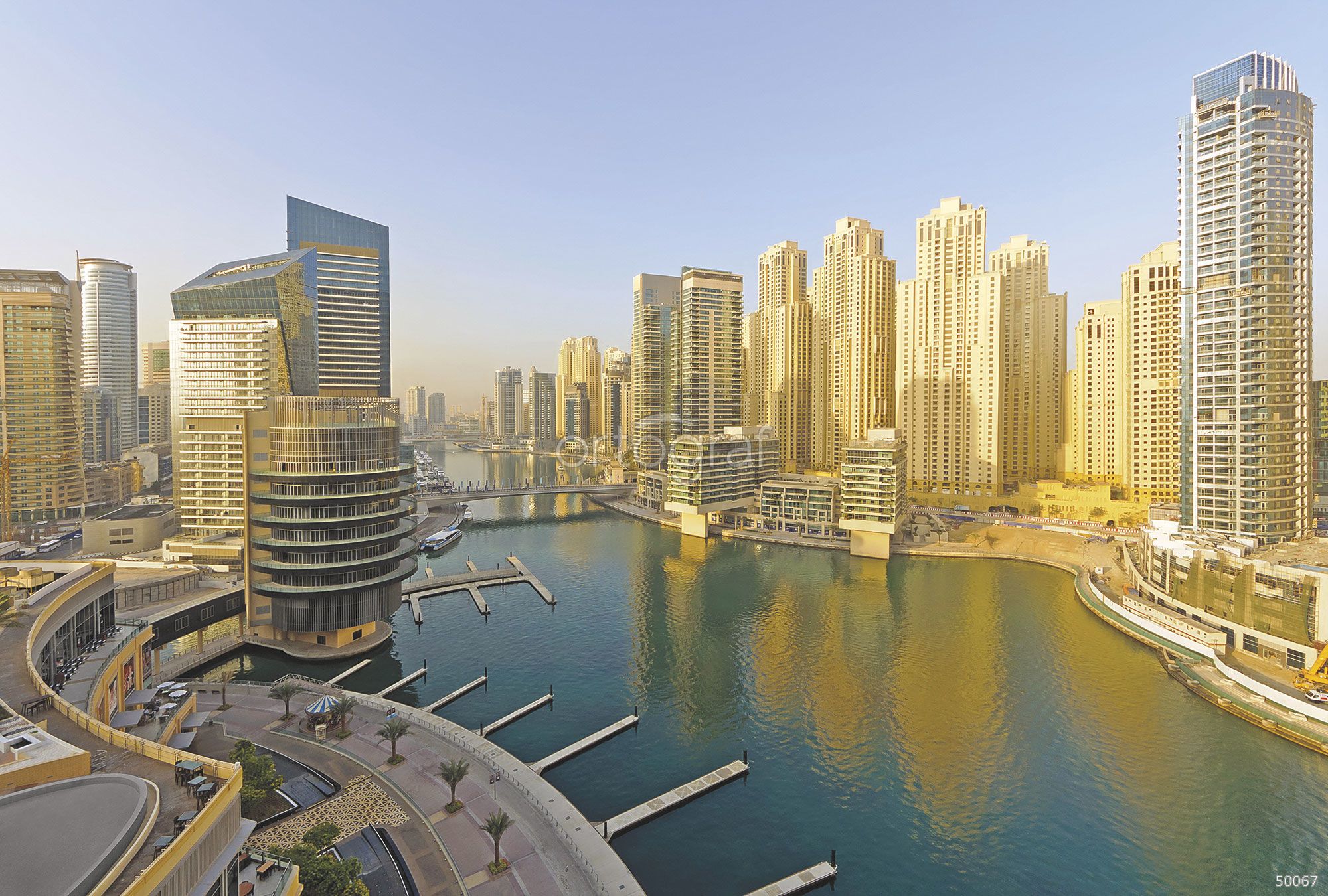 Современный вид на городской канал и высокие здания делового района, создающий ощущение простора, динамики и ритма большого города. Архитектурные формы и гладь воды подчеркивают стильность и урбанистическую атмосферу пространства. Такой сюжет гармонично впишется в интерьеры в современном стиле.