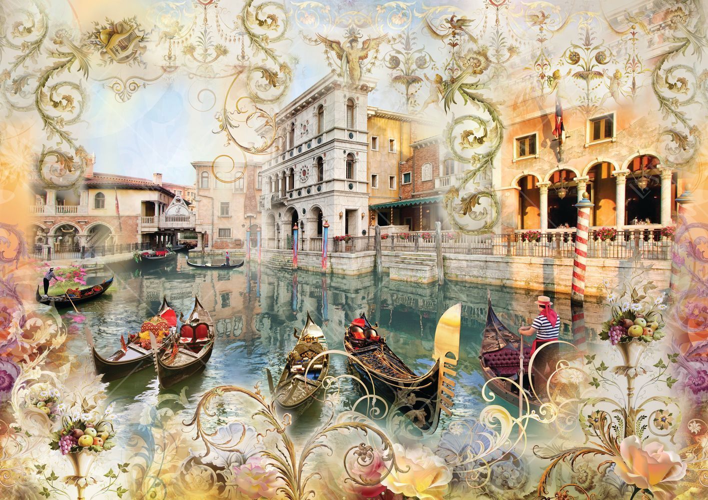 Фреска Венецианский пейзаж в орнаменте