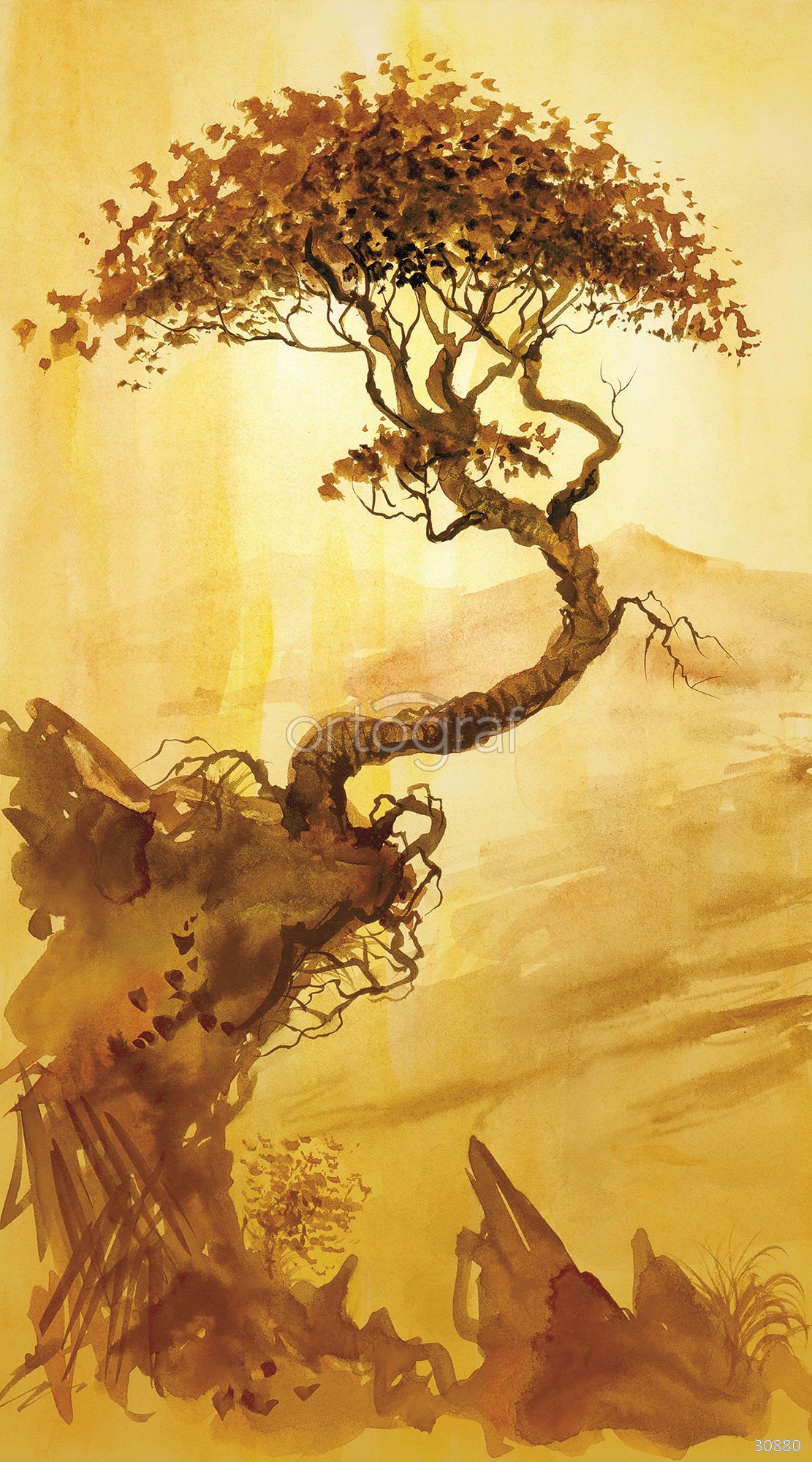 Элегантная работа в восточном стиле с изображением изогнутого дерева на фоне абстрактного пейзажа создает атмосферу гармонии, умиротворения и философского настроения. Такой сюжет добавляет интерьеру особую выразительность и подчеркивает утонченность пространства, хорошо подходит для зон отдыха и медитации.