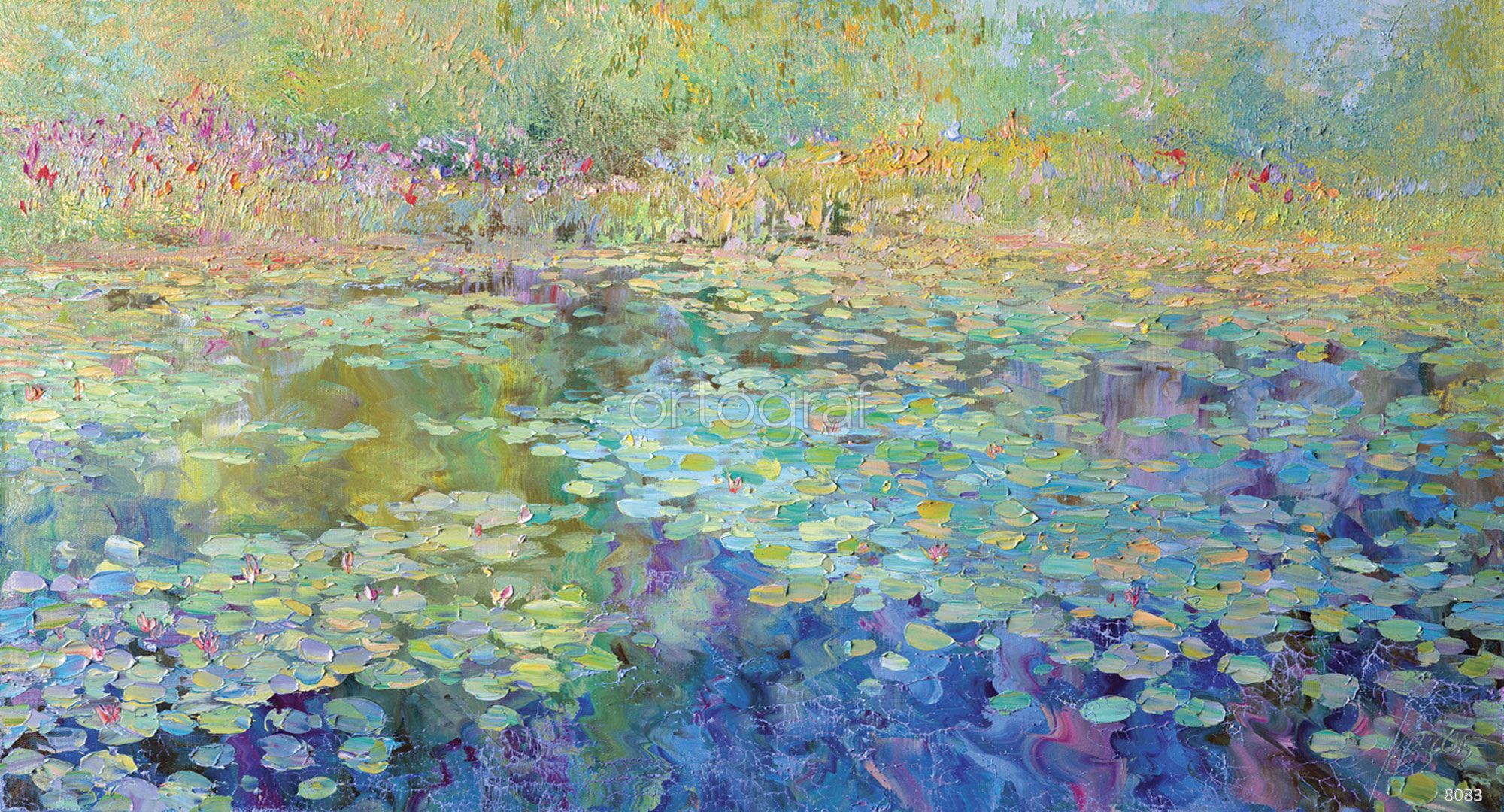 Пруд с водяными лилиями в обрамлении густой растительности передаёт атмосферу спокойствия и естественной гармонии Картина прекрасно подойдёт для создания умиротворяющего и свежего настроения в помещении, помогает расслабиться и отвлечься от суеты Лучше всего разместить такой сюжет в местах для отдыха и уединения