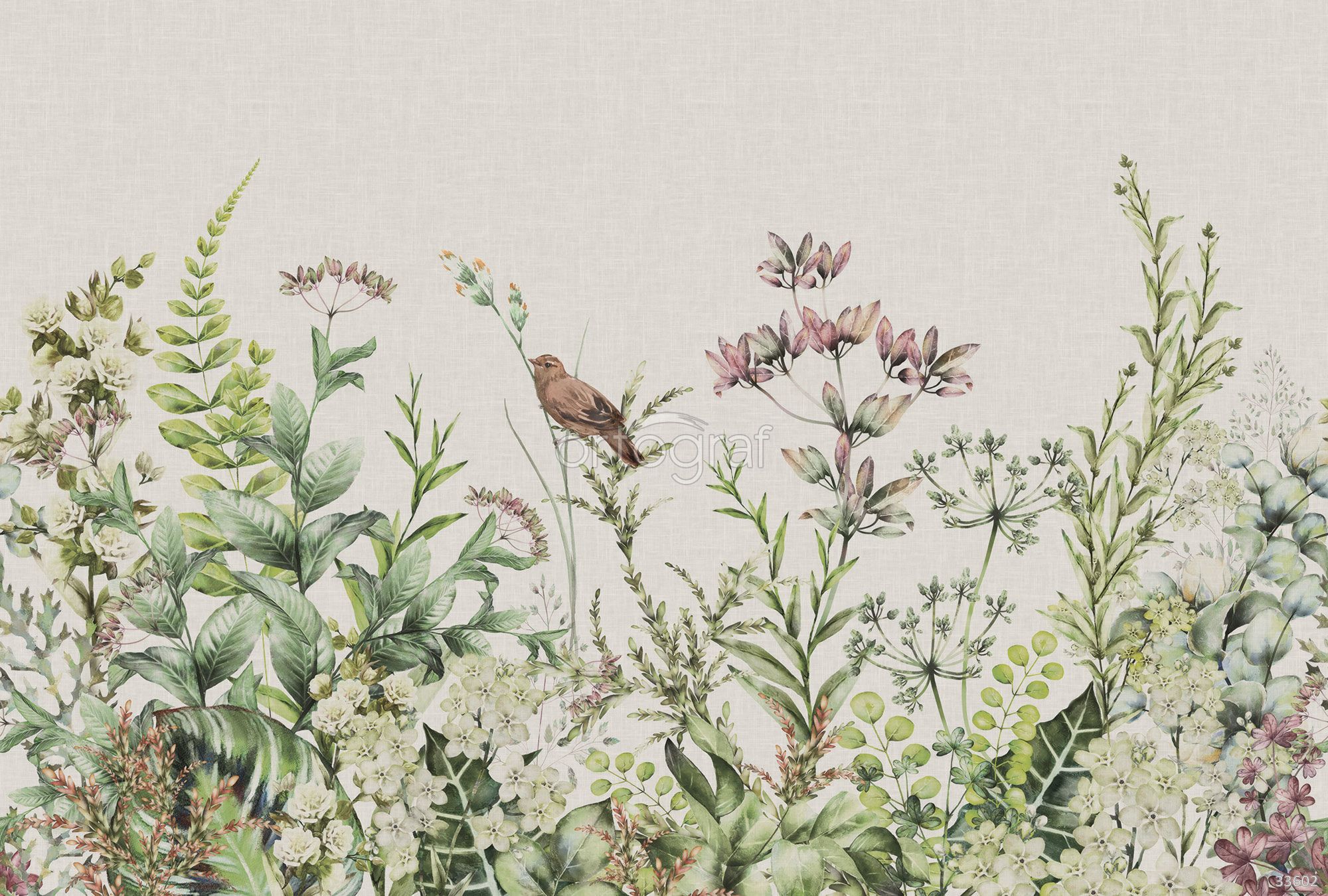 Акварельный рисунок с разнообразными луговыми травами и цветами, среди которых сидит небольшая птичка, создаёт ощущение уюта, лёгкости и природы в интерьере. Такой сюжет добавляет свежести и гармонии, наполняет пространство светом и спокойствием. Особенно хорошо подходит для помещений, где важна атмосфера расслабления и природной гармонии.