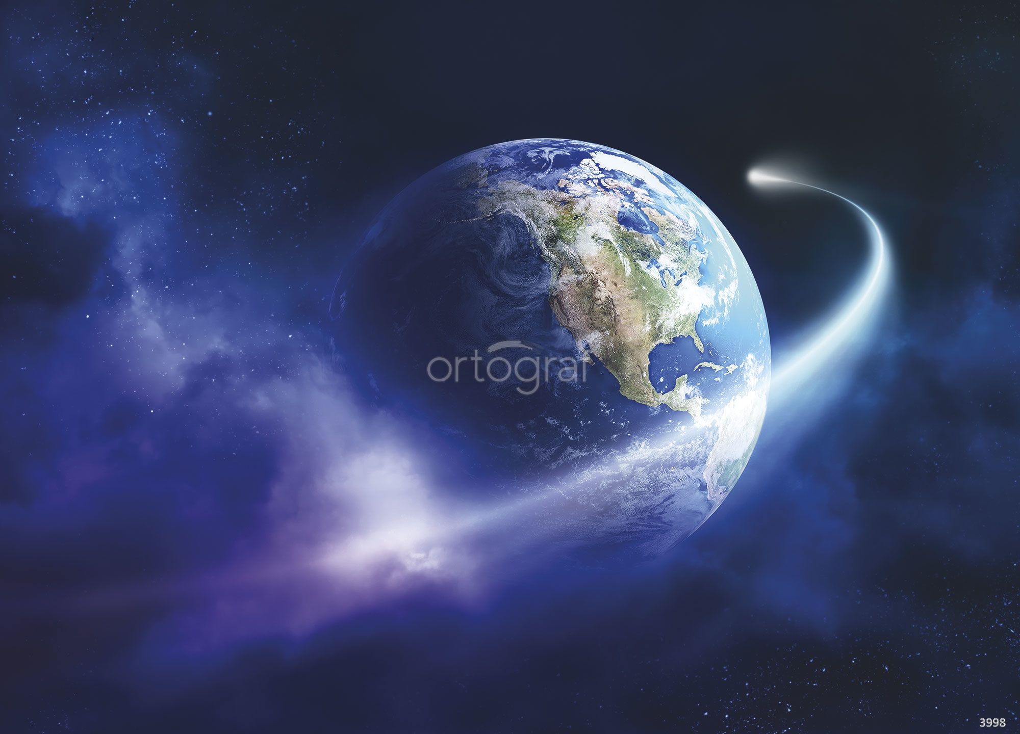Планета Земля на фоне космического пространства с пролетающей кометой создаёт ощущение величия и красоты вселенной. Такой рисунок добавляет интерьеру современный и вдохновляющий характер, помогает расширить границы восприятия помещения. Особенно хорошо подойдет для детской, офиса или спальни, мотивируя на мечты, исследования и новые открытия.