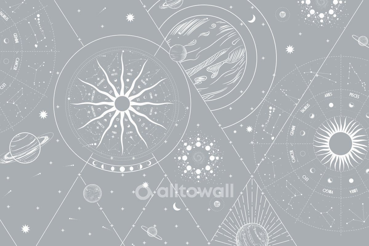 Звёздное сияние-2 – лёгкие серые оттенки и россыпи сверкающих серебряных звёзд преобразят интерьер, придадут ему больше загадочности и тайны. Такая модель станет отличным выбором для спальни ребёнка, создающим таинственную атмосферу глубин космоса. Центральный элемент – сверкающее серебряное солнце, лучи которого притягивают к себе взгляд и задают общий тон.