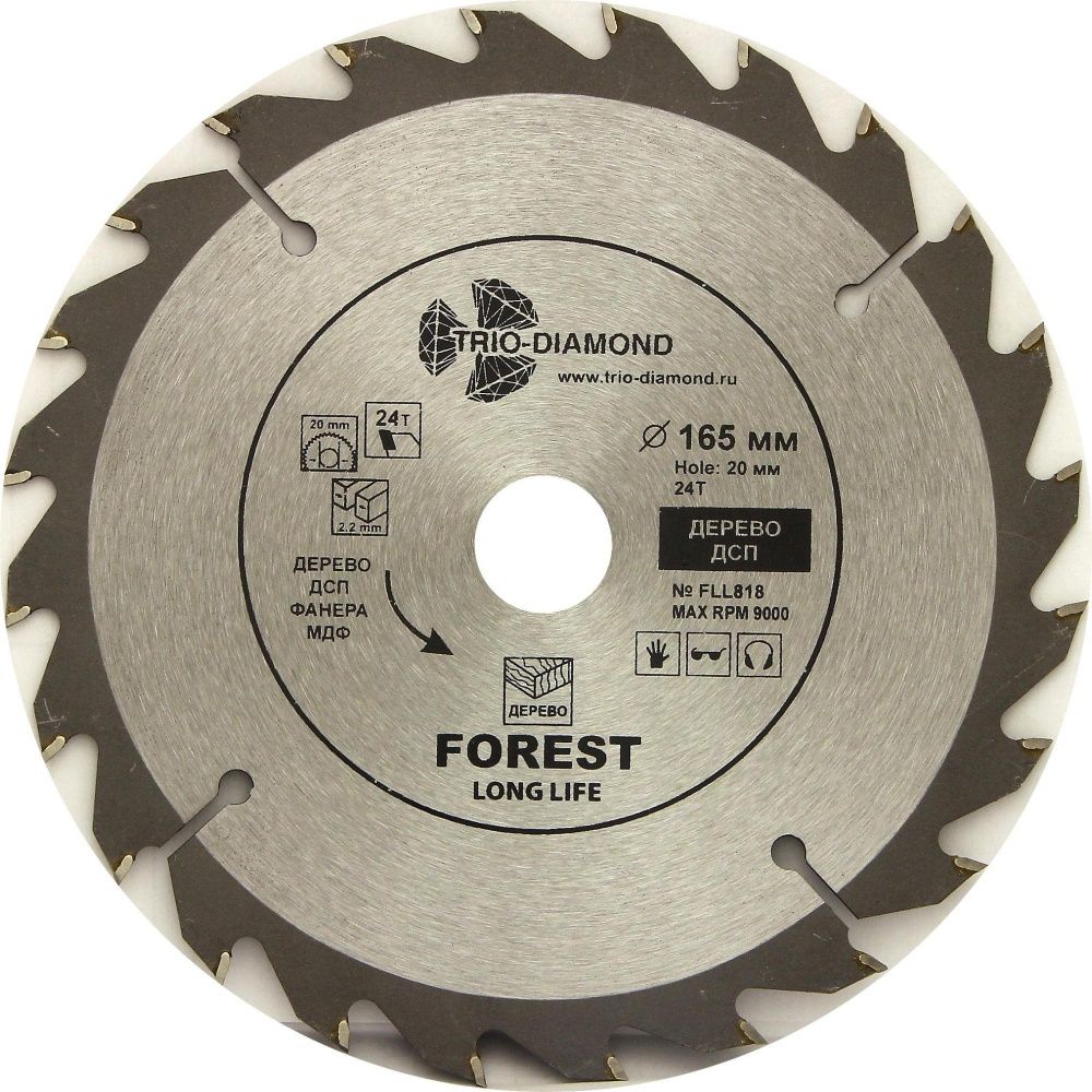 Диск пильный TRIO-DIAMOND серия Forest 165*24T*20/16 mm Назначение: дерево, ДСП, фанера.