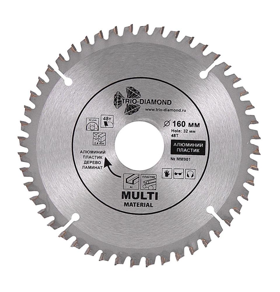 Диск пильный TRIO-DIAMOND серия Multi Material 160*48T*32/30/20 mm Назначение: ламинат, алюминий, ДСП, дерево.