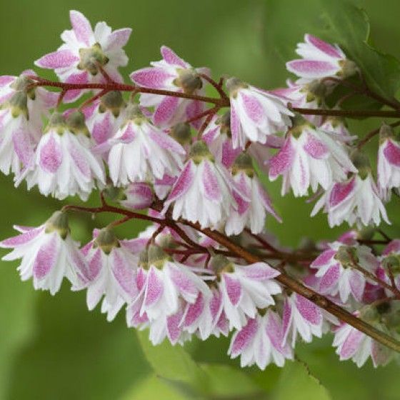 Удивительно красивый нежный сорт, побеги прямые с поникающими концами. Листья вытянутые, до 8 см длиной, зеленые, опушенные, желтеющие к осени. Цветение приходится на июль, в это время кустарник плотно покрывается небольшими махровыми цветами розовато-белого цвета, собранными в пышные кисти длиной до 12 см. Купить саженцы дейции шершавой Розеа Плена стоит для украшения зон отдыха, входа в дом, создания эффектной живой изгороди, сорт отлично смотрится в одиночной посадке на фоне газона и в составе растительной композиции, где его партнерами могут стать чубушник, гортензия, барбарис, сирень, розы. Растение неприхотливо, обладает хорошим иммунитетом, в средней полосе успешно зимует под укрытием. Если побеги подмерзают - в течении сезона они успевают восстановиться. Для посадки подойдет участок в легкой полутени с питательным, дренированным грунтом с нейтральной реакцией. Уход за дейцией сводится к поливам, внесению подкормок, обрезке и укрытию на зиму.