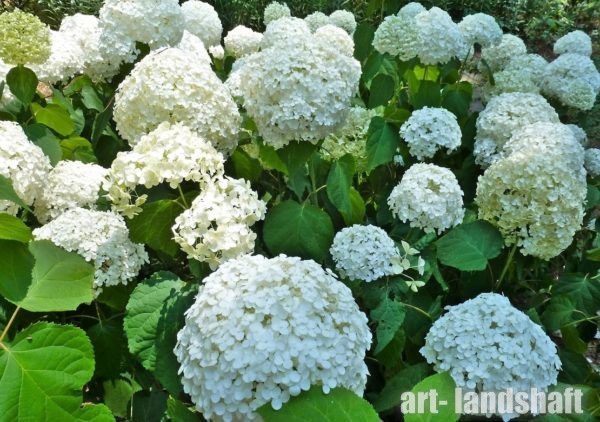 Гортензия древовидная Стронг Аннабель отличается быстротой роста, устойчивостью к заболеваниям и красотой многочисленных соцветий. Во время долгого цветения она несколько раз меняют расцветку.