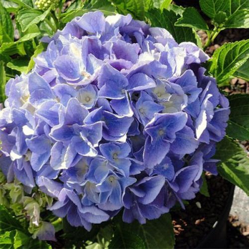 Многолетний цветущий кустарник Гортензия крупнолистовая Лавбла (Hydrangea macrophylla Lavblaa) достигает высоту 80-125 см. Ширина куста 100 см. Цветки собраны в щитки диаметром 12-17 см. Соцветия голубого цвета. Цветет гортензия с июля по сентябрь на побегах, отрастающих из верхних почек прошлогодних побегов. Зимостойкость крупнолистовой гортензии до -18˚С. Требует укрытия на зиму.