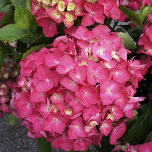 Гортензия крупнолистная Лёйхфейер (Hydrangea Macrophylla Leuchtfeuer) - красивый декоративный кустарник. В субтропиках достигает 4 м высоты, но с продвижением на север "уменьшается в росте" до 1-2 м. Отличается прямостоящими побегами. Листья простые, яйцевидные, ярко-зеленые. Бесплодные цветки крупные, розовые, с темно-карминовыми мазками.