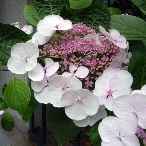Один из лучших белых сортов с плоскими кружевными соцветиями. Многочисленные стерильные чисто-белые цветки окружают и перемежаются с плодущими голубыми, сиреневатыми и розоватыми цветками. Соцветия диаметром 15-20 см. Цветение длительное, в июле-сентябре.
