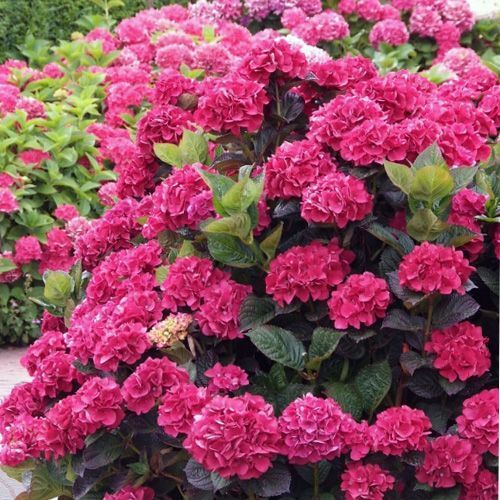 Гортензия крупнолистная Merveille Sanguine - красивый декоративный кустарник с прямостоячими побегами. Листья простые, яйцевидные, ярко-зеленые. Цветки крупные, шаровидные, до 20—25 см в диаметре, образуются на концах побегов. Цветет в июле-августе. В зависимости от кислотности почв можно менять окраску цветко