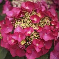 Гортензия Ротшванц - сорт с "птичьим" именем, в переводе с немецкого - "Горихвостка". Кустарник высотой до 1.5м с крупными (до 22см) плоскими соцветиями, состоящими из больших краевых цветков бордово-красного цвета и мелких розовых цветочков в центре.