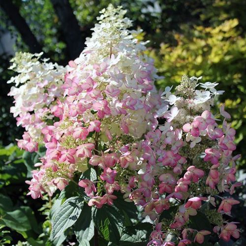 Гортензия метельчатая Ангел Блаш (Angels Blush) — высокорослый выносливый сорт, достигающий в высоту 2,5-3 м. Имеет множество крепких побегов, растущих вертикально. Цветет обильно и продолжительно стерильными и фертильными цветками, собранными в конусовидные эффектные, крупные метелки до 25 см, вначале белыми, затем розовыми,осенью красными. Цветение длительное, обильное с июня до заморозков.