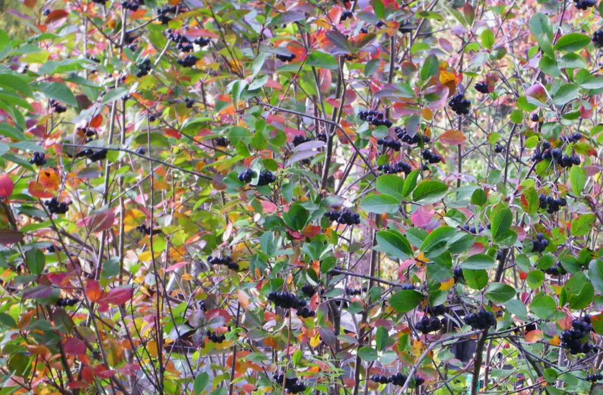 Аронию еще называют черноплодной рябиной за схожесть кистей ягод. Это светолюбивый кустарник до двух с половиной метров в высоту и диаметром около полутора-двух метров. Культура родом из Канады, на территории которой произрастает повсеместно. В уходе она неприхотлива, прекрасно растет почти на любом типе грунтов, отлично выдерживает значительные и длительные понижения температуры, поэтому не требует укрытия на зиму, также хорошо переносит летнюю засуху. В плодах черноплодной рябины масса полезных веществ. Они полны витаминами Е, Р, А, К, С, здесь же присутствует практически вся группа В. В составе есть аскорбиновая и фолиевая кислоты, много йода, бор и магний, марганец, медь и железо. Ягодки богаты фруктозой и глюкозой (до 10%), а также сорбитом (циклический спирт) – это сладкое вещество можно употреблять даже диабетикам.