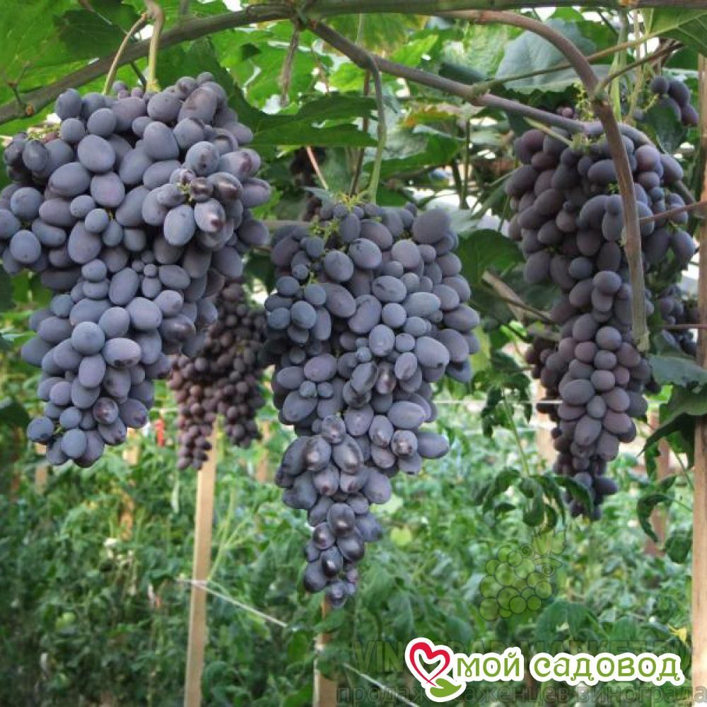 Виноград Гала – сорт столового винограда. Созревает быстро, за 110 – 125 дней. Кусты сильнорослые, листья крупные, побеги вызревают хорошо. Грозди большие, конической или цилиндроконической формы. Ягоды крупные, овальной формы, синие. Мякоть сочная, мясистая, с кисло-сладким вкусом. Показатели морозоустойчивости средние, может выдержать минимальную температуру в -21°С. Чтобы защитить кусты от мороза и холодного зимнего ветра, их обязательно нужно укрыть на зиму. Перед укрытием обязателен влагозарядковый полив. Гала» дает обильный, стабильный урожай, поэтому следует следить за нагрузкой на лозы. Обрезка винограда играет очень важную роль в формировании будущего урожая и его количестве.