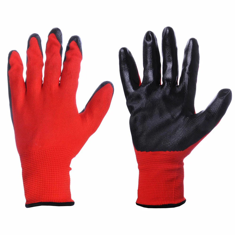 Перчатки нейлоновые с нитрилом (красно-черные)