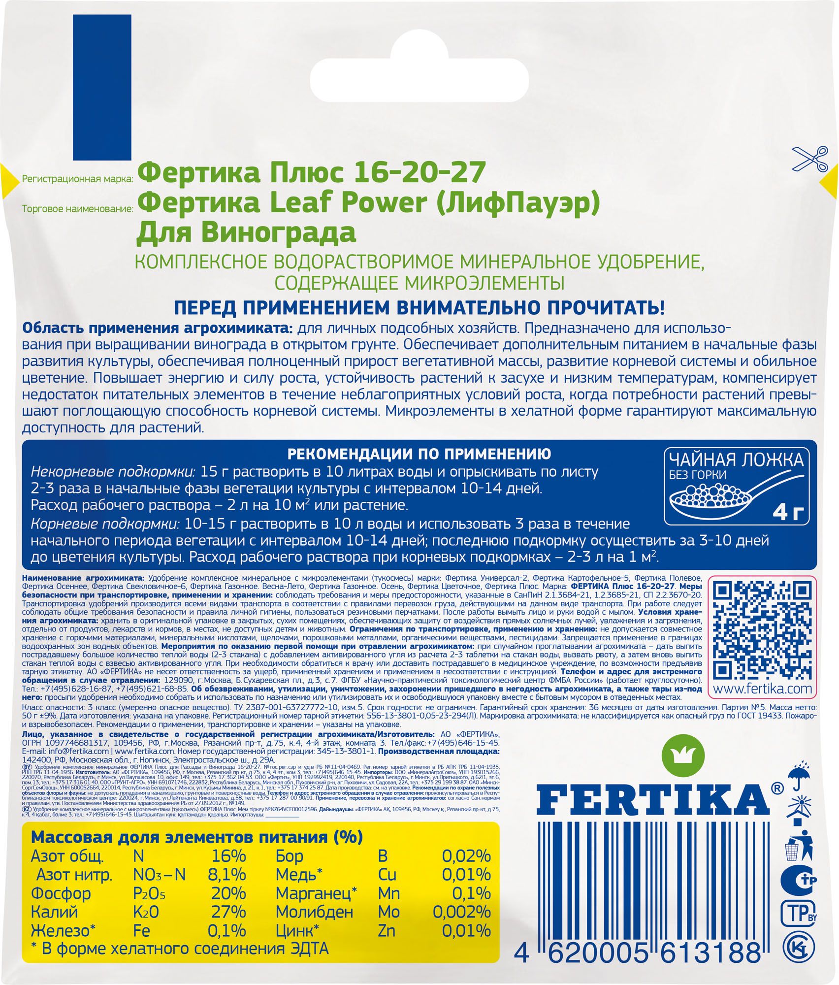 Водорастворимое удобрение LEAF POWER от Фертика – это надежный помощник в уходе за виноградом. С его помощью вы сможете добиться впечатляющих результатов, наслаждаясь богатым и сладким урожаем. Не упустите возможность сделать ваш виноградник более продуктивным и здоровым!